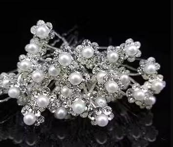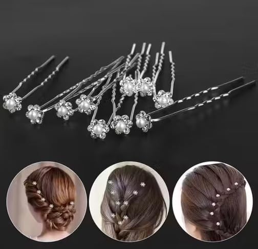 Pearl & Crystal Bridal Juda Pins for Women | Decorative Flower Hair Pins for Bun & Hairstyle | Wedding, Party & Festive Hair Accessories (Pack of 12, Silver)