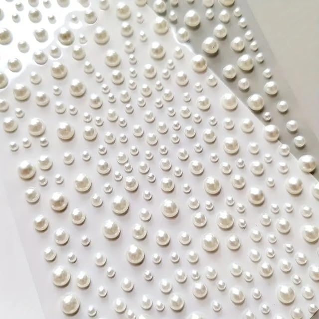 PREMIUM PEARL STICKERS: High-quality self-adhesive pearl embellishments perfect for creating elegant makeup and hair designs for special occasionsWhite Self-Adhesive Flat Artificial Stickers | Decorative Crafting & Cosmetic Accessories