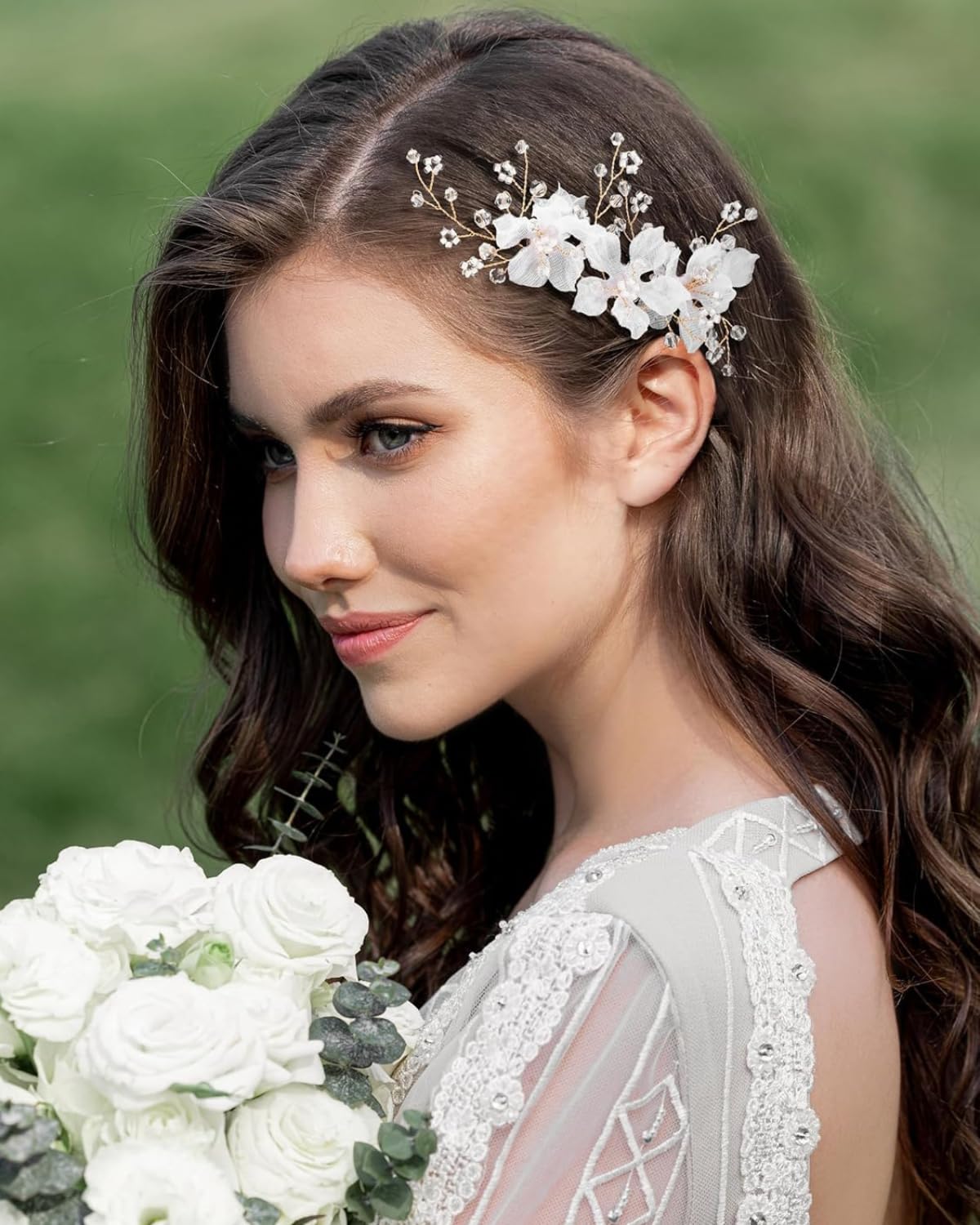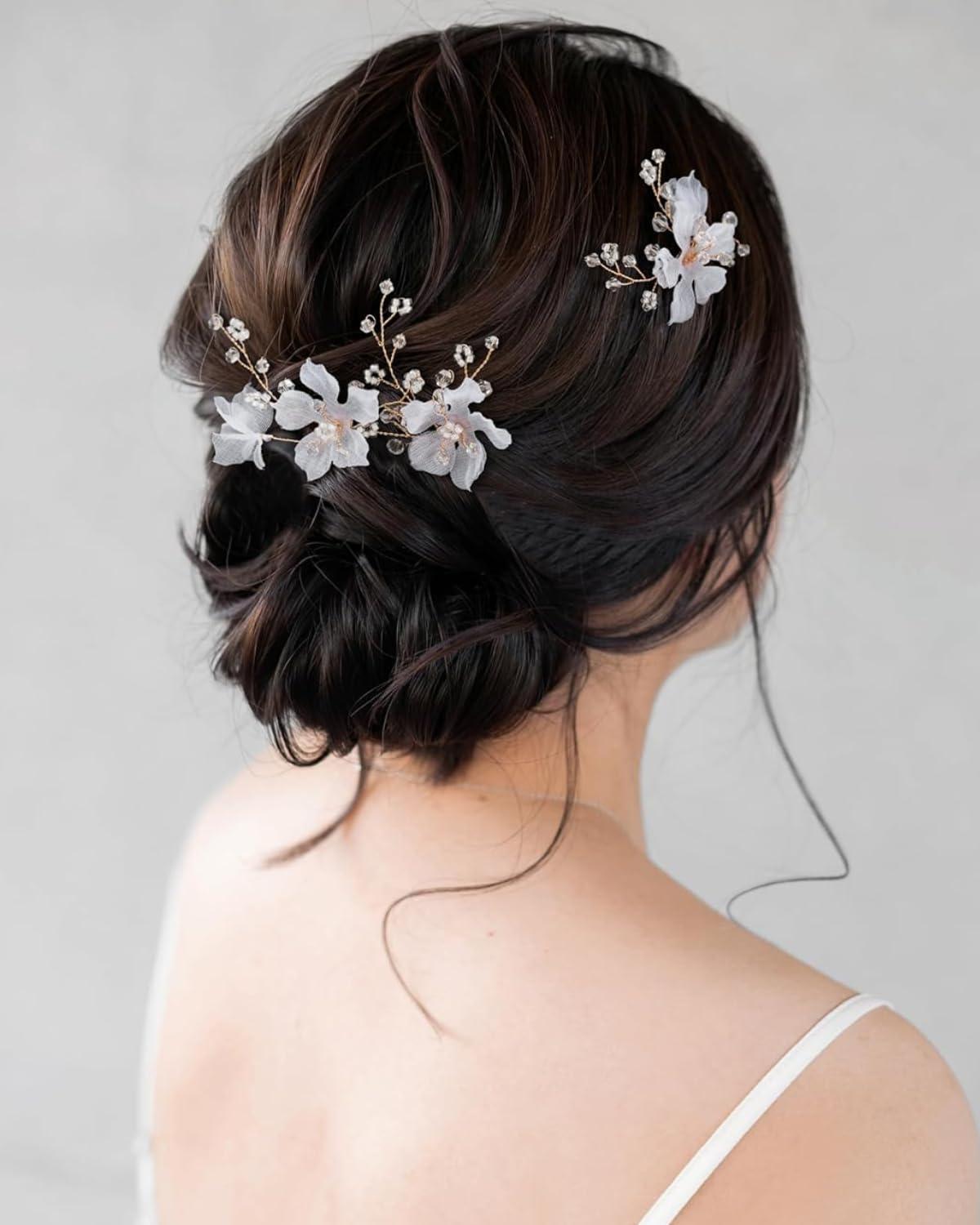 Ethereal White Floral Design with Pearl Accents : Each hair pin for bun is crafted with frosted white flowers and pearl accents set on silver wire. These elegant u pins add a graceful, airy charm—making them ideal hair accessories for women wedding looks, especially for buns and updos