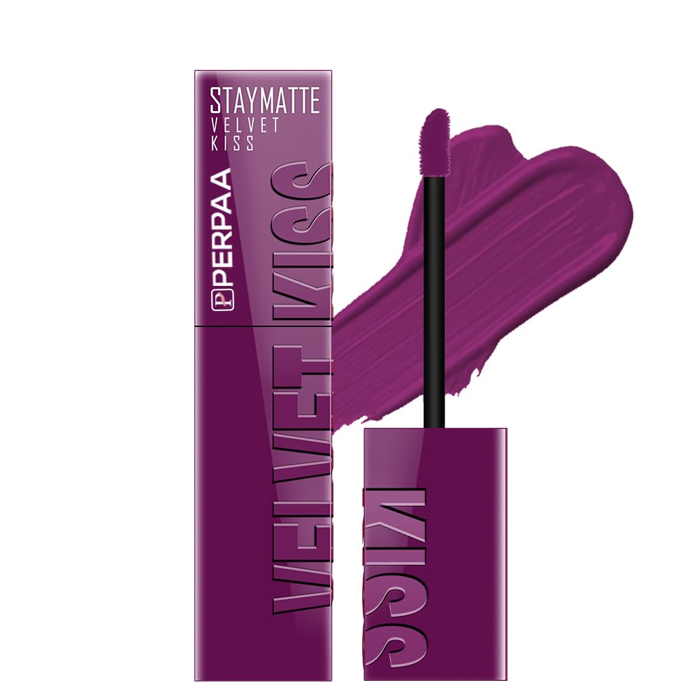 PERPAA Velvet Kiss Non-Transfer Matte Liquid Lipstick for Women, Up to 16 hours Long-Lasting Stay with enriched Vitamin-E & Waterproof Formula (Wine, 3.5 ml)