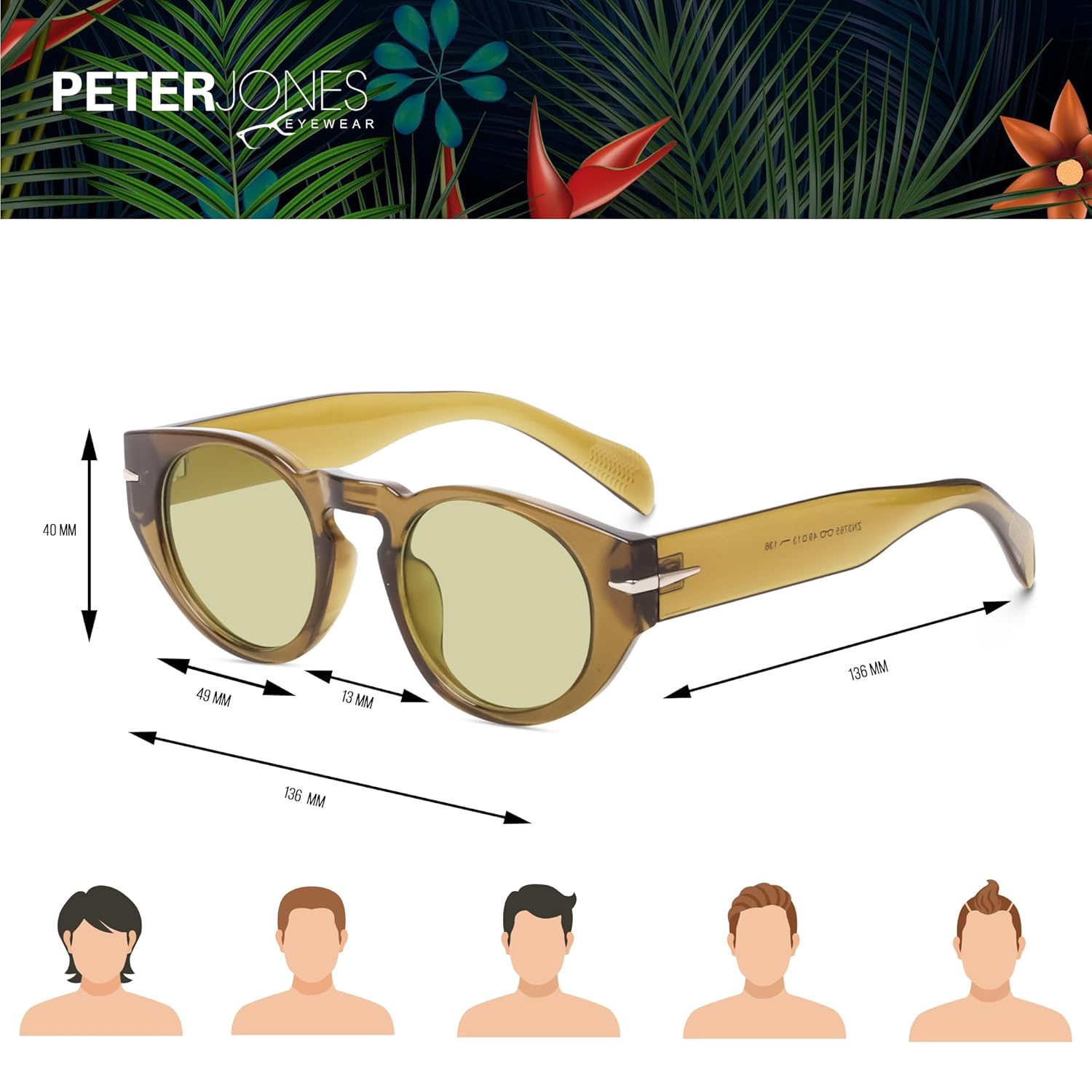 Peter Jones Round Beckham Style Unisex Oversized UV/UB Protected Sunglasses (3765)