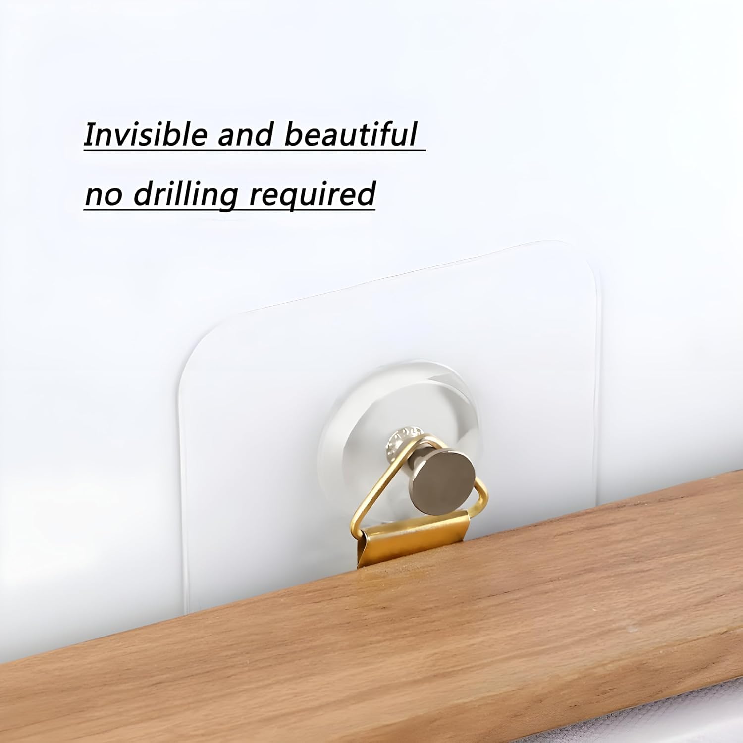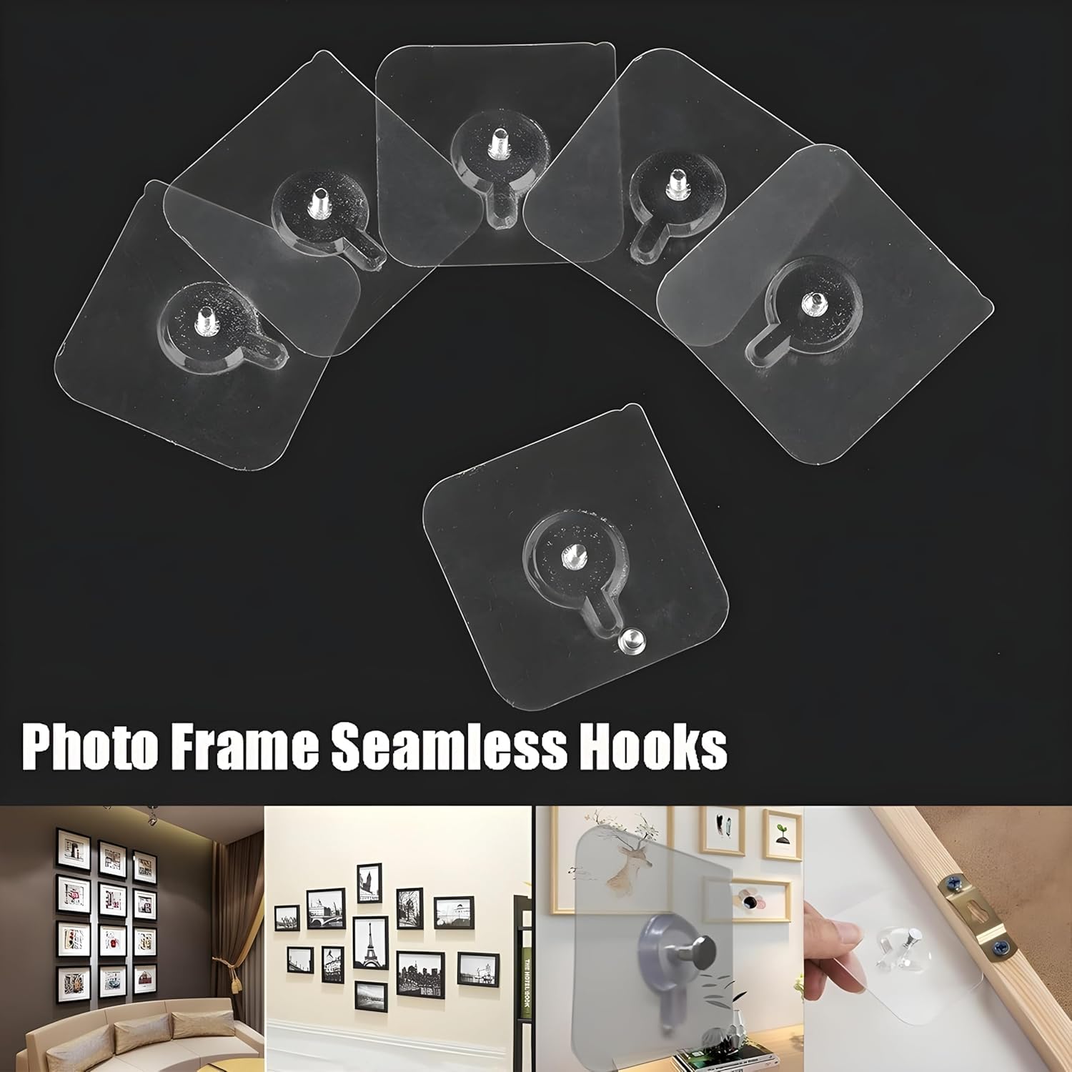 Photo Frame Hooks for Wall Without Drilling, 10 Pack Self Adhesive Hooks for Wall Heavy Duty Strong Nail Free for Hanging Photo Frame (Hanging Hook, Transparent) Stainless Steel (Pack of 10)