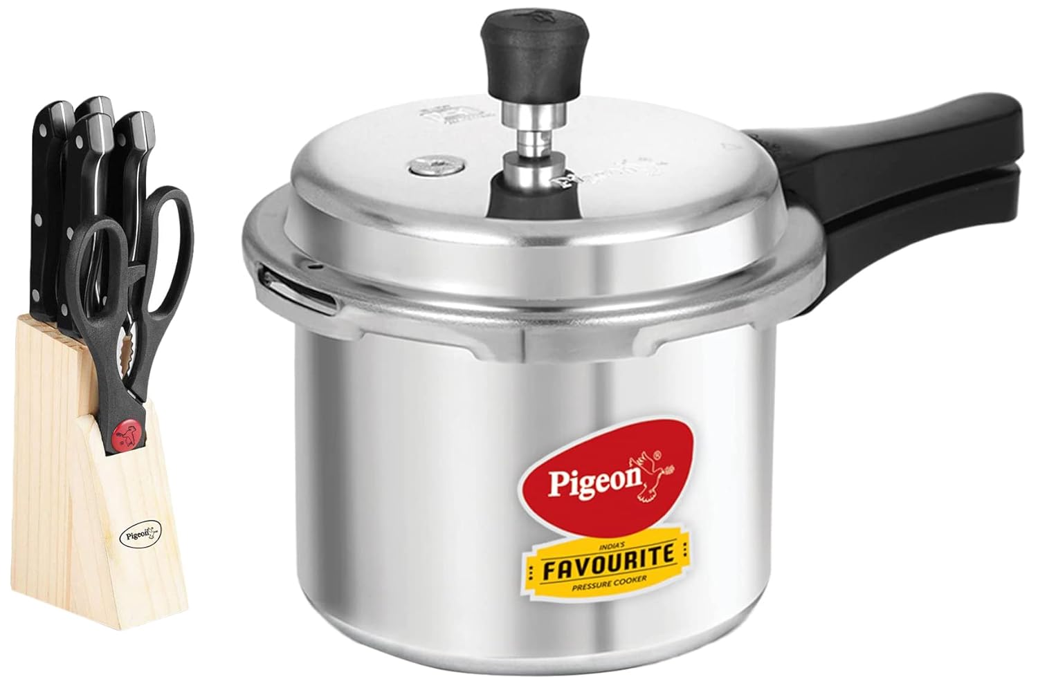 Pigeon pressure cooker comes with precision designed weight set to regulate steam pressure.