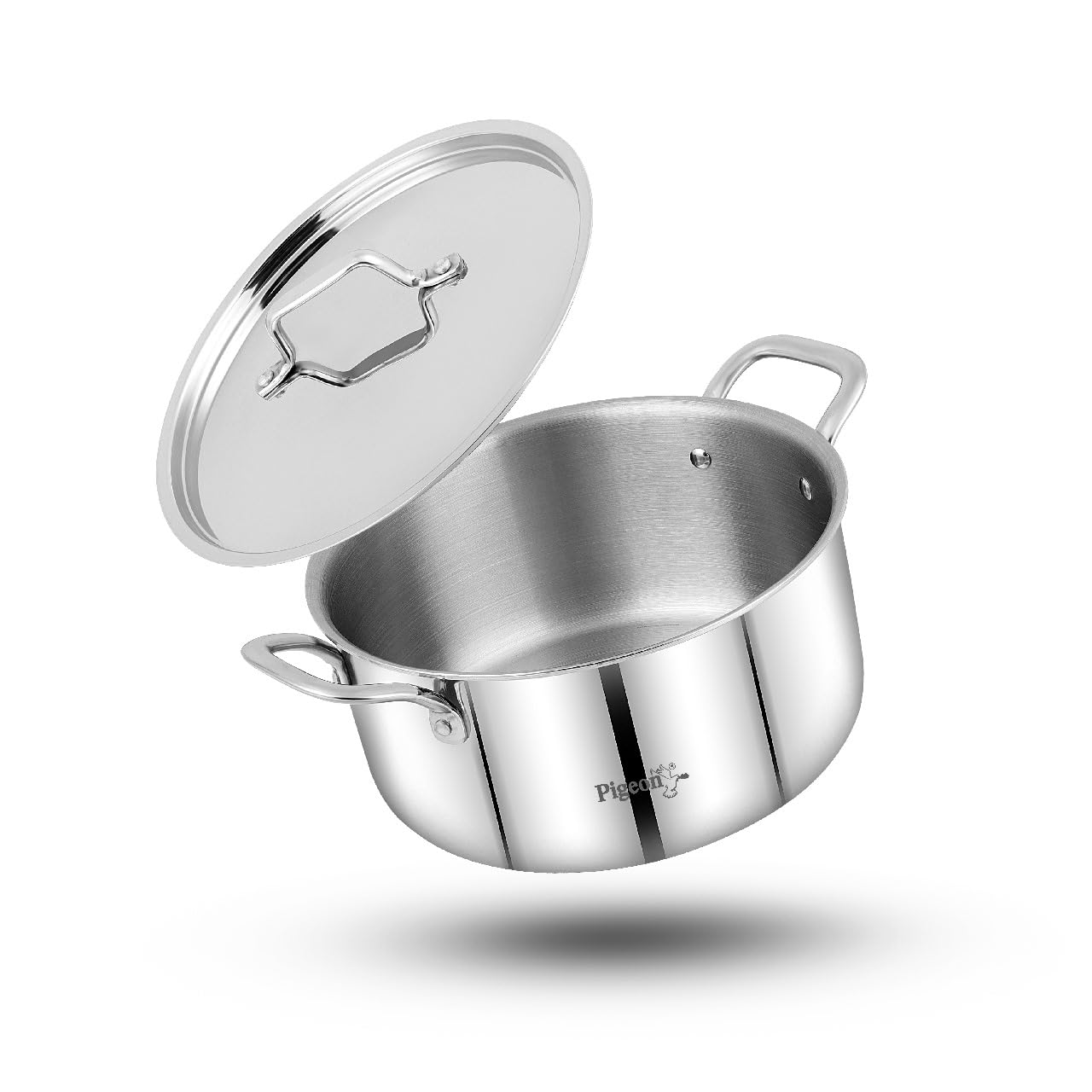 Pigeon TriSteel 24 cm Casserole with Stainless Steel Lid, 6200ml Capacity, For Biryani|Pulao|Halwa|Curries| Induction & Gas stove compatible
