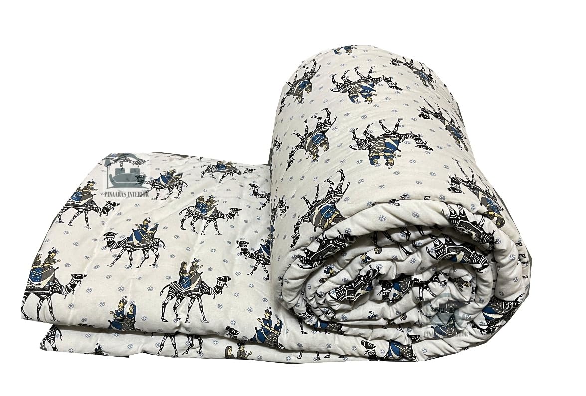 PINAARAS INTERIOR Cotton Quilt 400 GSM Rajasthani Traditional Jaipuri Hand Block Print Summer and Winter Cotton Rajai Quilt Razai – (Double Bed)