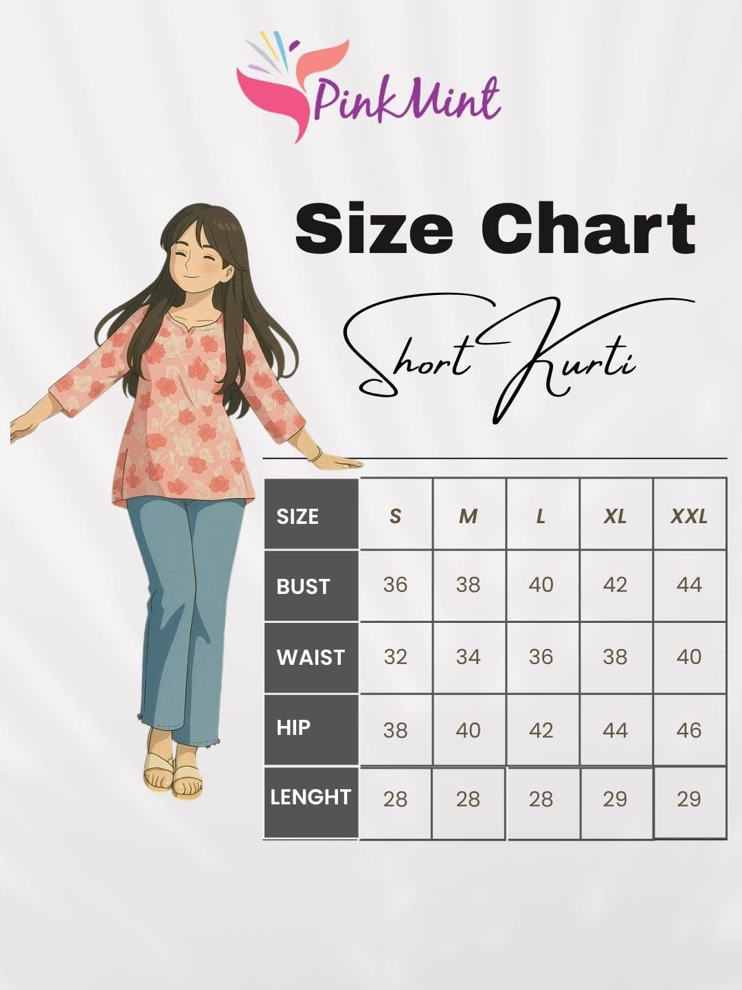 Pinkmint Women Short Kurti | Cotton Blend Printed Tunic Top | Trendy Casual Top | Casual & Office Wear Ethnic Top for Jeans