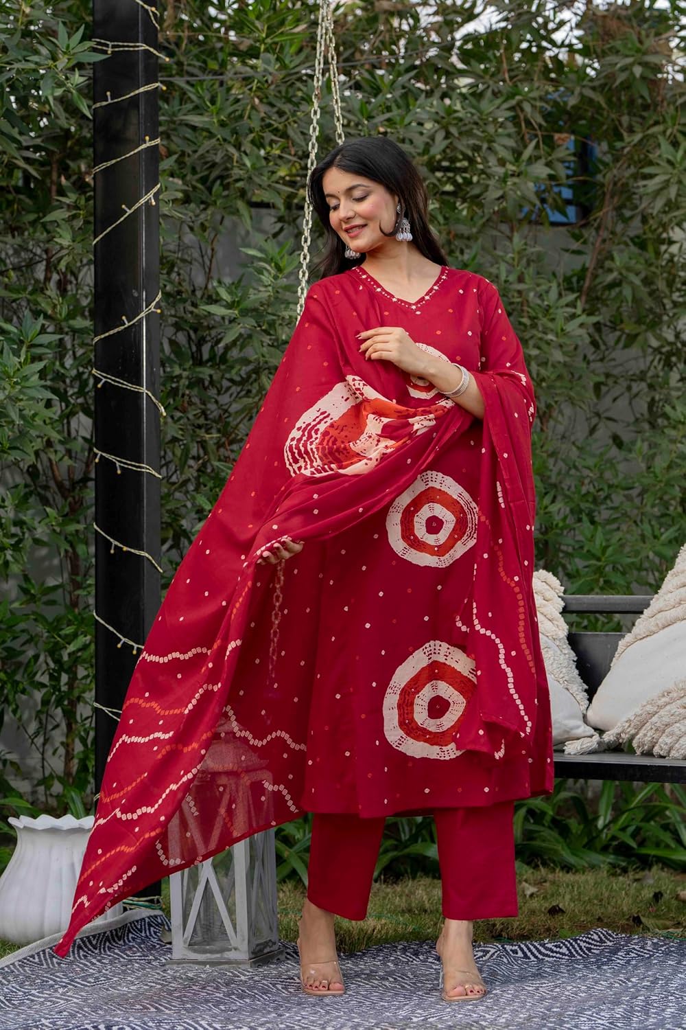 Pistaa’s Women’s Pure Cotton Bandhani Print Kurta Set with Dupatta
