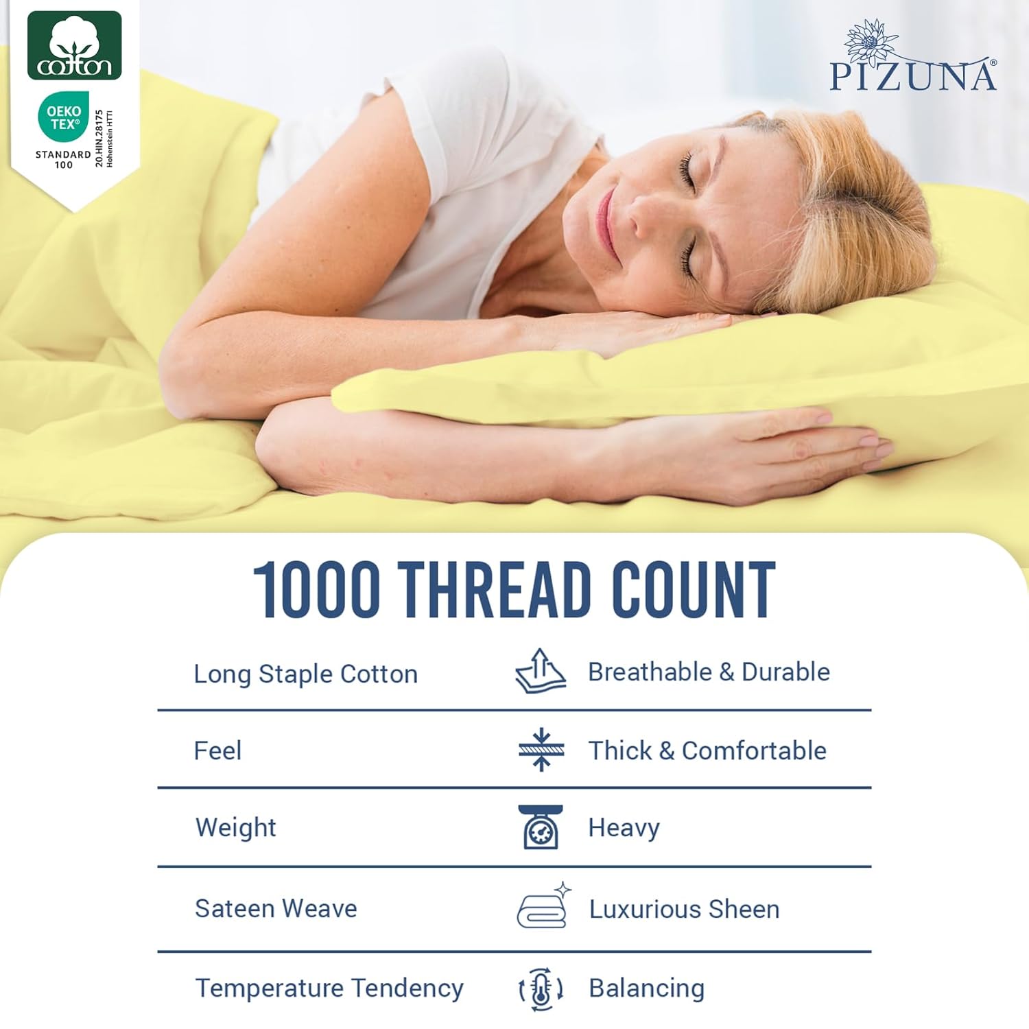 100% Pure & Natural Mercerized Combed Cotton: Made from Pizuna’s fine yarn technique, these authentic 1000 thread count flat sheets feature a single dent (4 up-1 down) sateen weave. Pure and natural mercerized combed cotton bedding wrinkles initially, but it softens with each wash and the wrinkling reduces, while giving a crisp look.