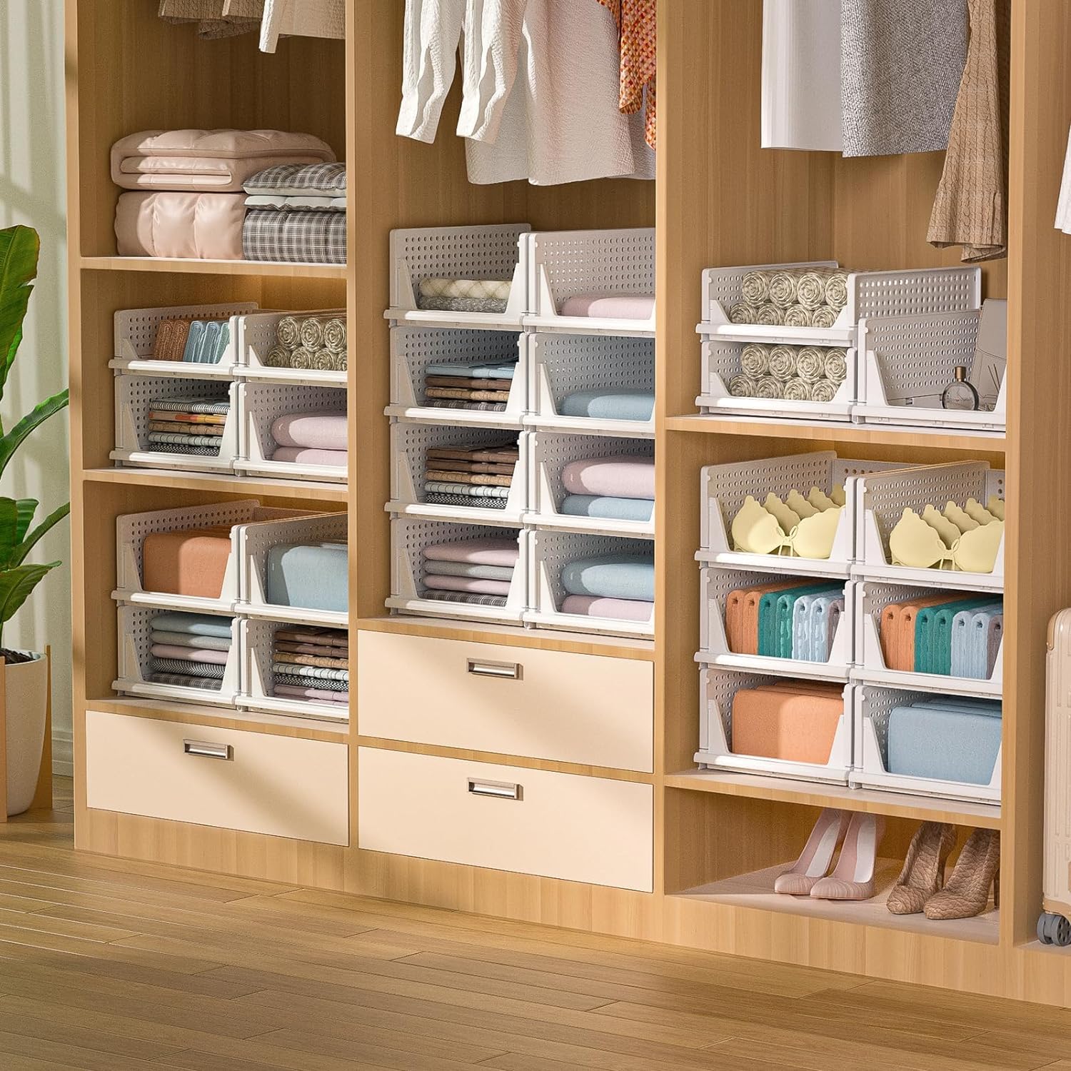 ๐-๐๐ข๐๐ซ ๐๐ญ๐๐๐ค๐๐๐ฅ๐ ๐๐ซ๐ ๐๐ง๐ข๐ณ๐๐ซ: This 4-tier clothes organizer for wardrobe cupboard comes with shelves that easily stack together. You can add or remove layers to fit your space and storage needs.