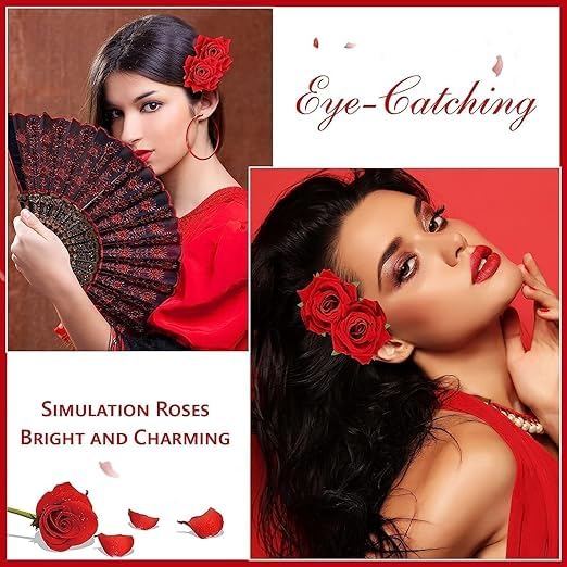 VERSATILE SET: Complete hair accessory set featuring red rose artificial flowers, U-pins, and clips for elegant hairstyling and decoration