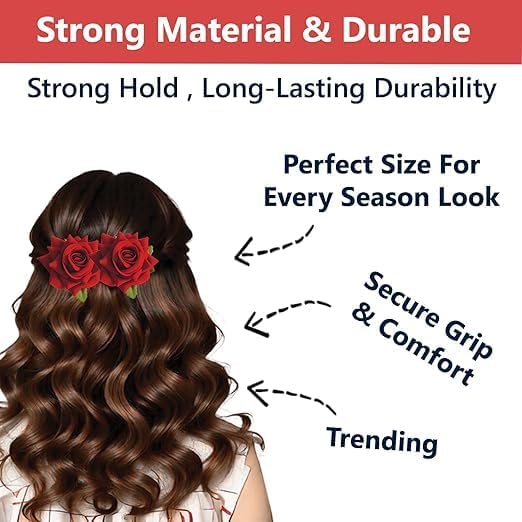 Transform your hairstyle into a stunning masterpiece with these elegant red rose hair accessories. Perfect for special occasions like weddings, parties, and festive celebrations, this versatile set includes U-pins and clips adorned with beautiful artificial roses. The accessories are designed to enhance your bun, juda, or braid hairstyles with a touch of graceful floral charm. These decorative pieces are particularly suitable for bridal hairstyling, adding a romantic and sophisticated element to the bride’s overall look. The vibrant red roses create an eye-catching contrast against any hair colour, while the practical pin and clip design ensures secure placement throughout your event. Whether you’re a bride seeking the perfect hair embellishments or attending a special celebration, these hair accessories will elevate your hairstyle from simple to spectacular.