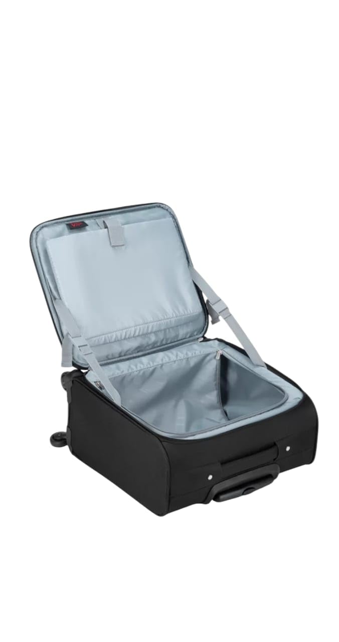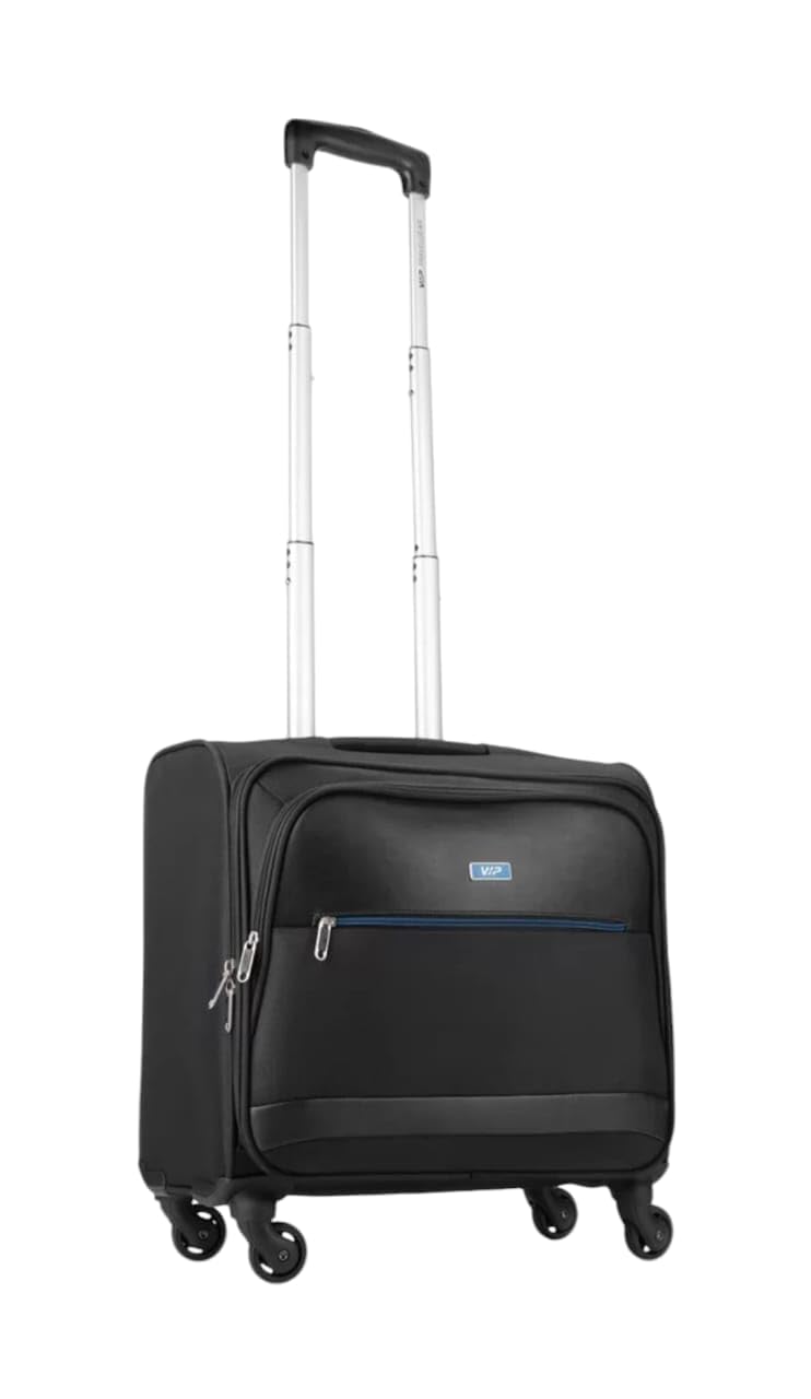 This sleek and compact trolley bag from VIP is the perfect travel companion for your short business trips or weekend getaways. Its 44cm size makes it an ideal cabin luggage that complies with most airline regulations. The sturdy construction with a telescopic handle and smooth-rolling wheels ensures effortless mobility, even when fully packed. The black exterior exudes a professional look, while the blue accent adds a touch of style. With multiple compartments and pockets, you can efficiently organise your belongings for hassle-free travel. Lightweight yet durable, this trolley bag strikes the perfect balance between functionality and convenience, making it a must-have for frequent travellers. Our Product is value added product 100% Original.