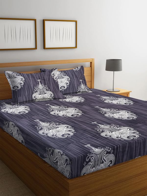 Premium 100% Cotton 220tc Flat Double Bedsheets for Summer Breathable | Wrinklefree (Size-90 x 90 Cm, 7ft x 7ft) with 2 Pillow Covers (Size-17 X 27 Inches, Texture Grey & White)| TC – 220