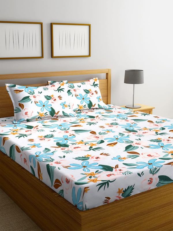 Premium Cotton Flat Double Bedsheets with 2 Regular Size Pillow Covers | Double Bed Breathable | Wrinklefree | Ultrasoft 210 tc Supersoft Floral | 90×90 Inches, Navy Blue