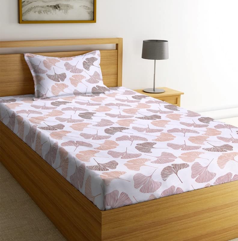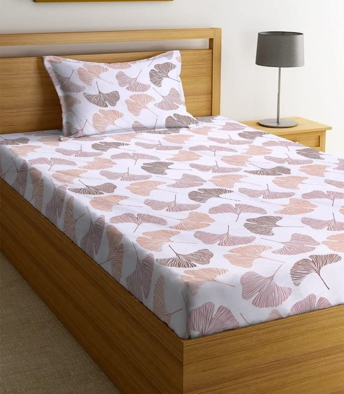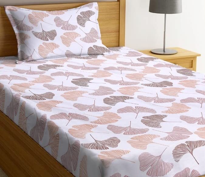 Premium Glace Cotton 180 TC Flat Single Bedsheets for Summer Breathable | Wrinklefree (Size-60 X 90 Inch) with 1 Pillow Covers (Size-17 X 27 Inches, White & Beige)