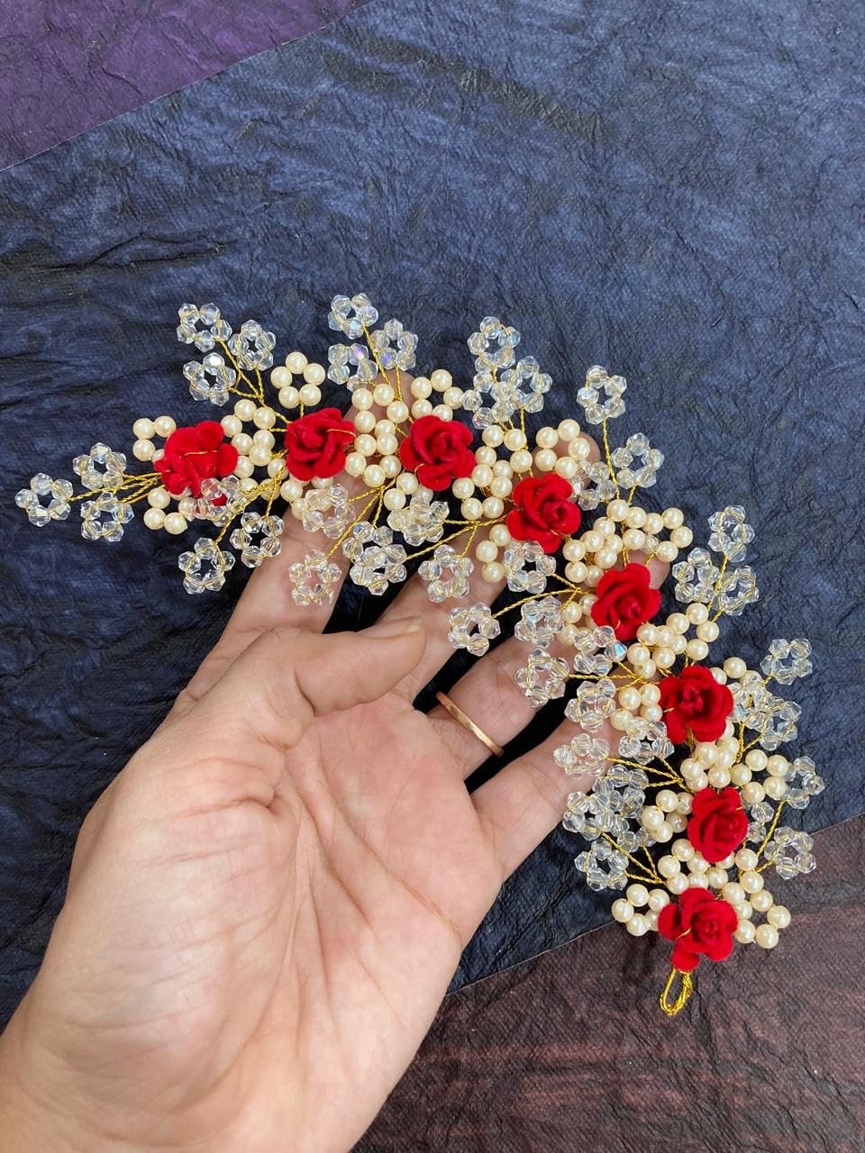 Handcrafted with Precision – High-quality pearls, flowers, and golden wire detailing give a rich and elegant finish.