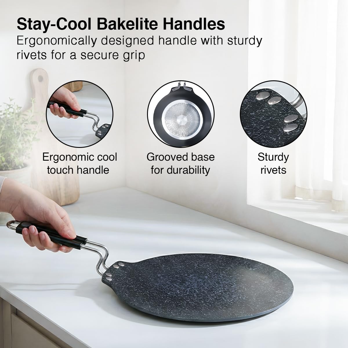 Hard Anodised Body- Ensures Durability- Hard Anodized Body Ensures That The Tawa Doesn’T Lose Shape With Regular Use And Results In A Trouble-Free Performance For Life.