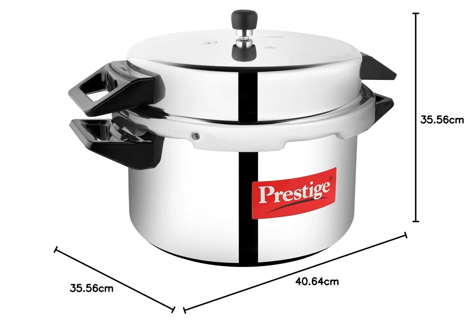 India’s one of the favourite pressure cooker! The widely used and appreciated Prestige Popular Pressure Cooker comes with top of the line features. Manufactured from virgin aluminium to ensure zero contamination, this cooker boasts of highest quality of raw materials used. Add to that the elegant design and splendid finish, this cooker is a sheer pleasure to cook with.