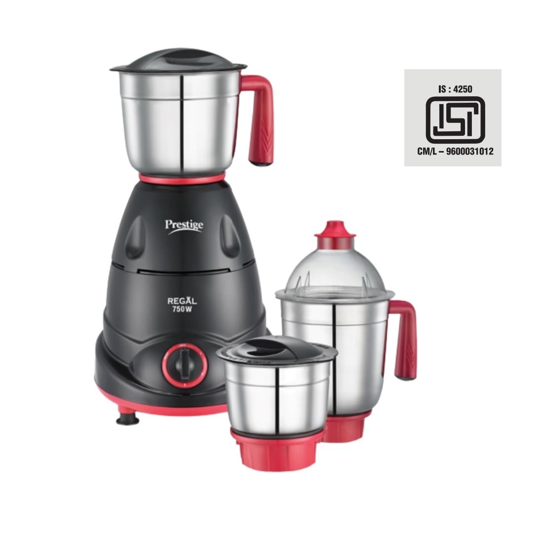 Prestige Regal 750W Mixer Grinder with 3 stainless-steel Jars|Appealing Design|Black and Red
