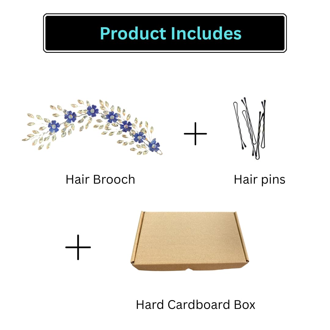 Premium royal blue flower hair broach showcases deep blue flowers with shimmering silver leaves and crystals. Lightweight and comfortable, perfect for weddings, receptions, and festive events. Pairs beautifully with both ethnic and western outfits, making it a versatile and statement accessory. Perfect for weddings, engagements, festive occasions, and parties. Lightweight, durable, and versatile – ideal for buns, braids, and open hairstyles. Makes a perfect gift for brides, bridesmaids, and loved ones.