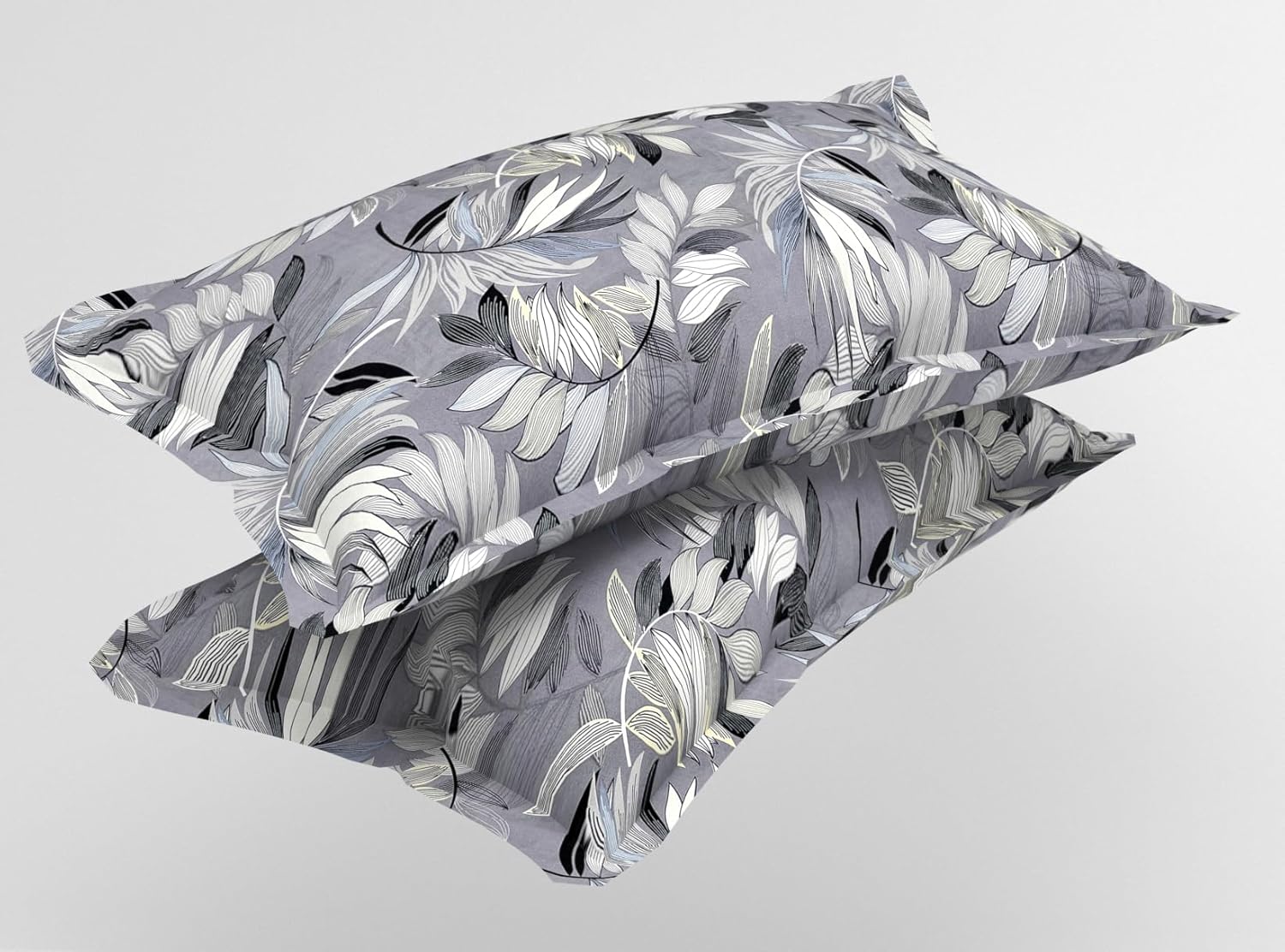 Prime Collection Microfiber bedsheet for Double Bed with 2 Pillow Covers Breathable | Wrinklefree and Soft Touch 164 TC Pattren Floral Color – Grey and Black