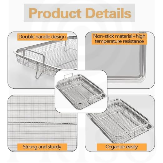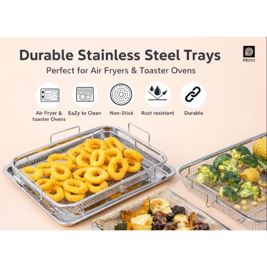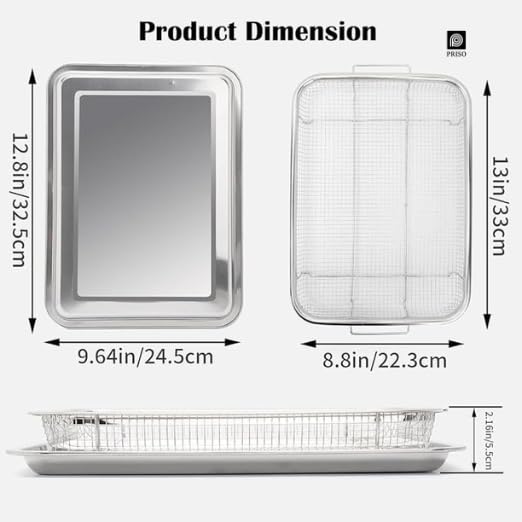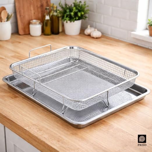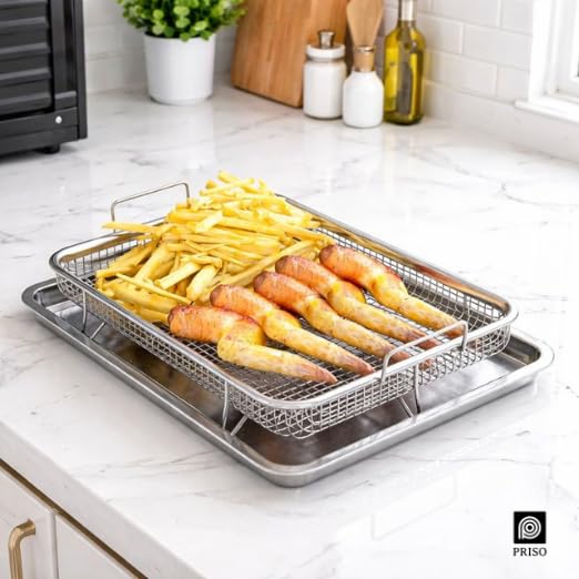 PRISO Crisper Tray for Oven, 1 pcs Nonstick stainless steel Crisper Tray, and Basket, Air Fry in your Oven, Great for Baking and Crispy Foods. CRISPER TRAY the 1-piece crisper tray and basket is the revolutionary air frying tray that you can use in your oven. The raised basket allows for the convection heat to reach every angle of the food and gives you the perfect crisp, every time! Fry French fries, tater tots, mozzarella sticks and so much more. cookware – has revolutionized kitchens across the world with the introduction of nonstick stainless steel cookware! our frying pans have improved in every area including the nonstick coating, stay-cool handles, exterior finish, and durability, including infusing diamond-like particles to the surface to ensure the pan doesn’t scratch! Enjoy and welcome to the family. ultimate nonstick the nonstick cooking surface is coated three times and then reinforced with diamonds to deliver the ultimate food release.