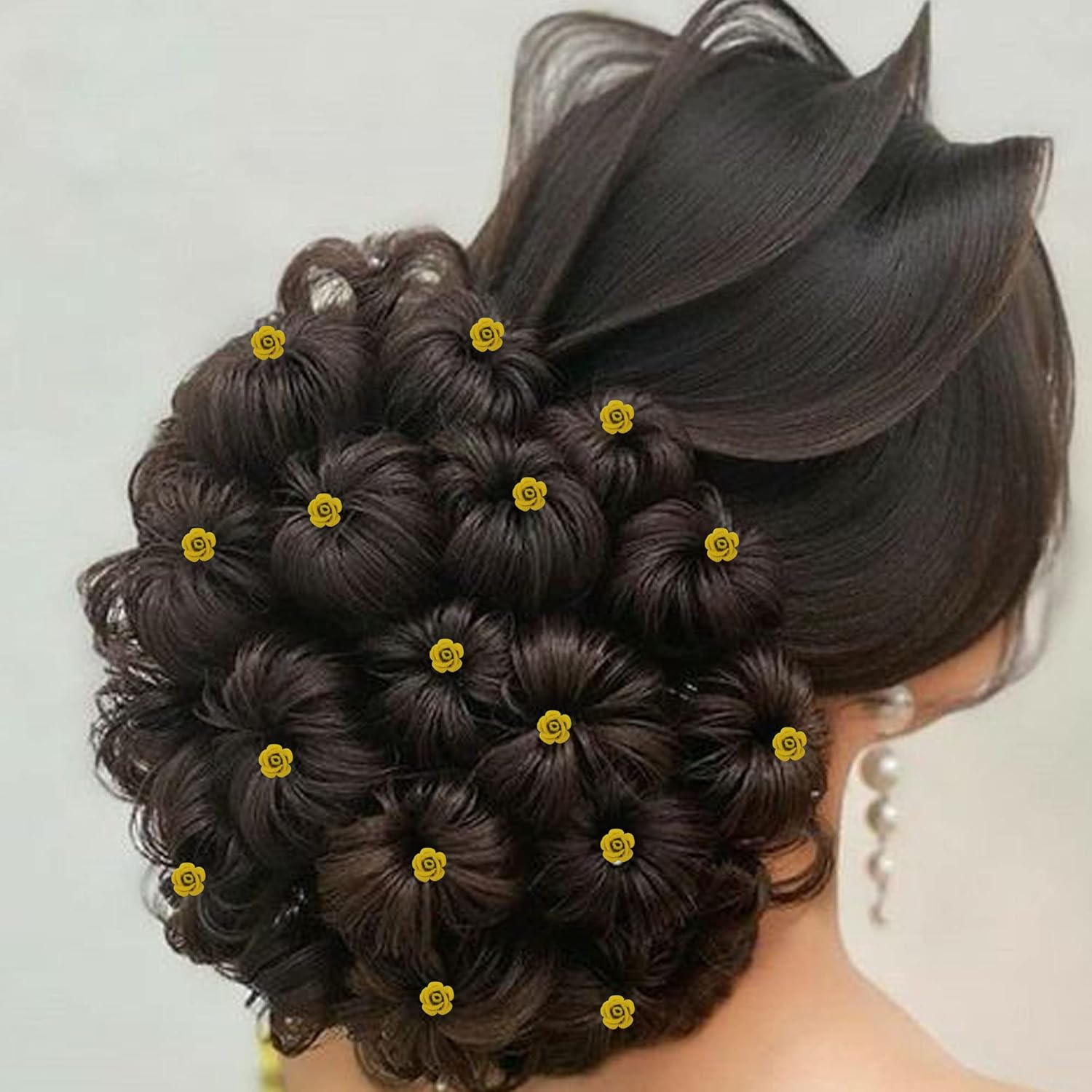 PRODUCTMINE® Bridal Hair Bun Pin Accessories/Fancy Golden Juda Pins with Artificial Yellow Rose for Women and Girls – Set of 16 PCs