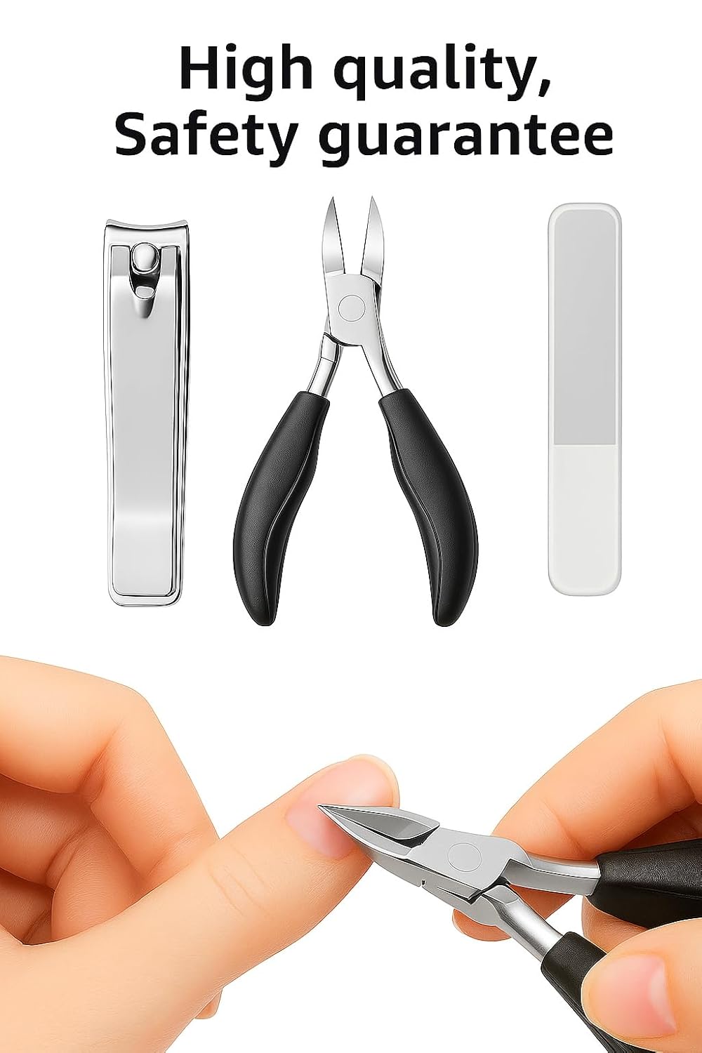 PROFESSIONAL KIT: Complete nail care set featuring heavy-duty toenail clipper, precision nail nipper, and professional nail file for comprehensive nail maintenance