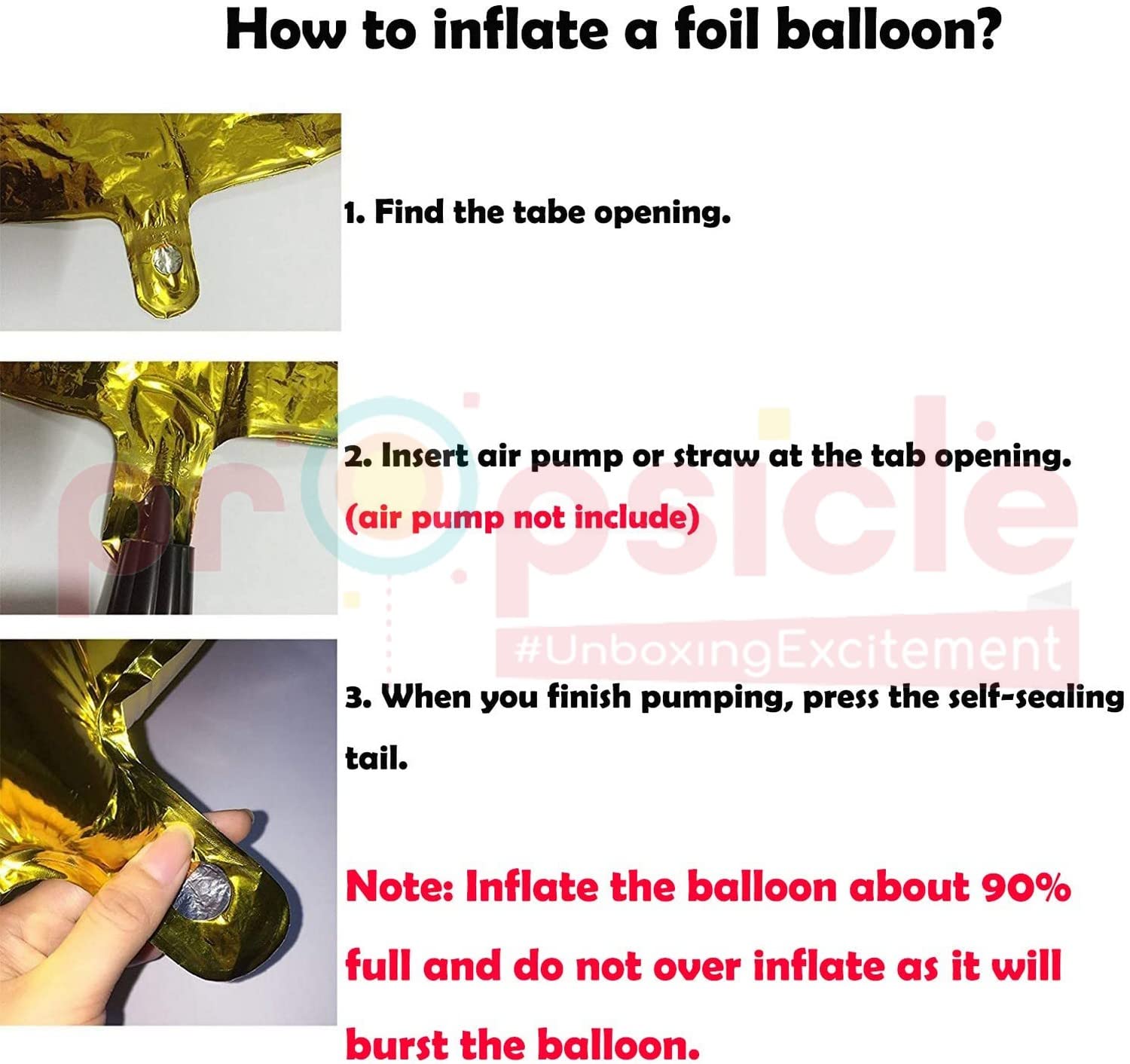Easy inflation: Inflate with a hand pump or straw; self-seal valve helps hold air through the event window. Avoid overfilling to maintain shape and seams. If combining with garlands, assemble the arch first, then position the numerals for symmetry.