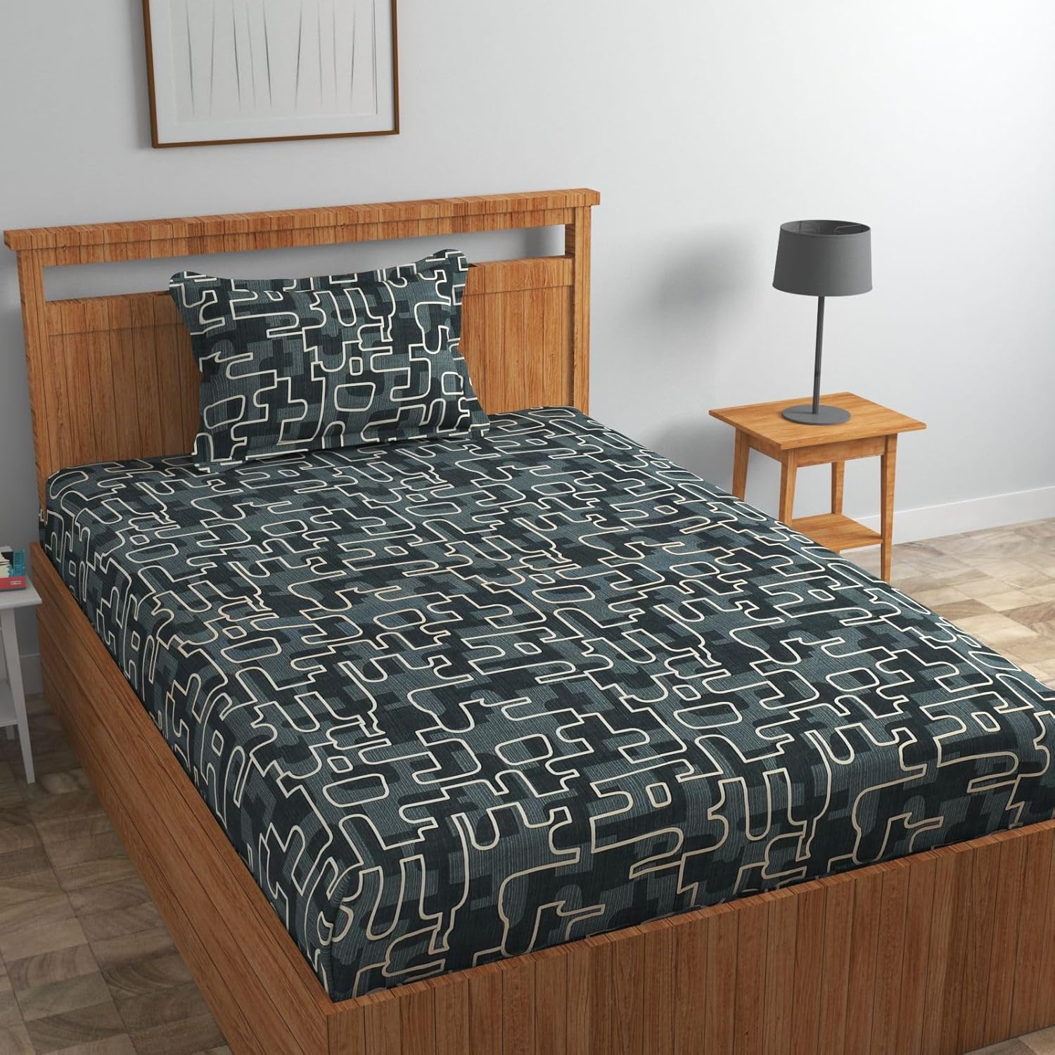 Pure Cotton 220tc Flat Single Bedsheets for Summer Breathable | Wrinklefree (Size-60 X 90 Inch or 228 x 152 cm) with 1 Pillow Covers (Size-17 X 27 Inches, Dark Grey)