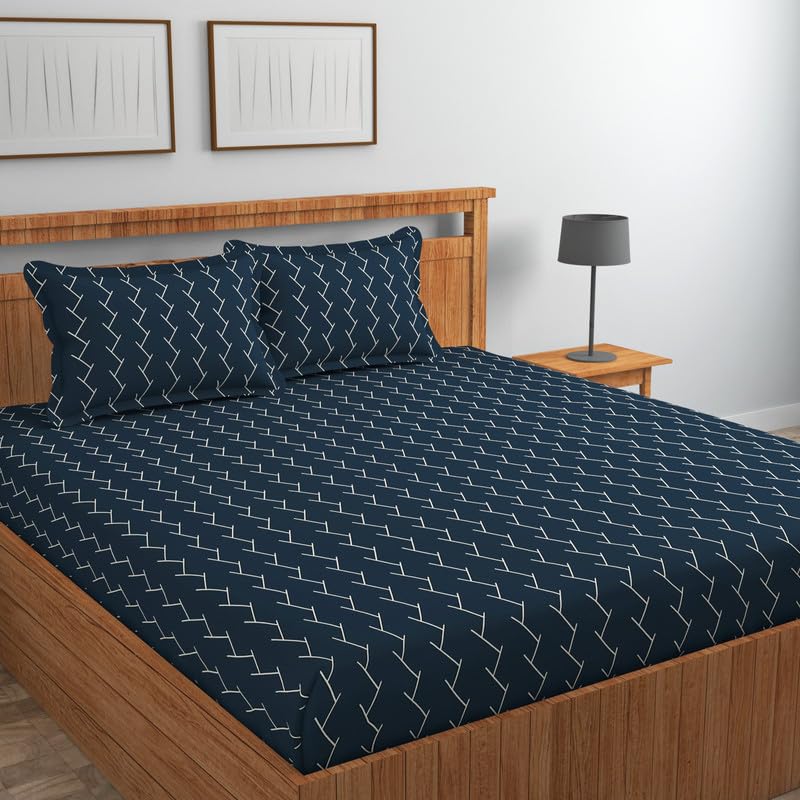 Pure Cotton Flat Double Bedsheets with 2 Regular Size Pillow Covers | Double Bed Breathable | Wrinklefree | Ultrasoft 200 to 220 tc Supersoft |90×90 Inches, Dark Blue