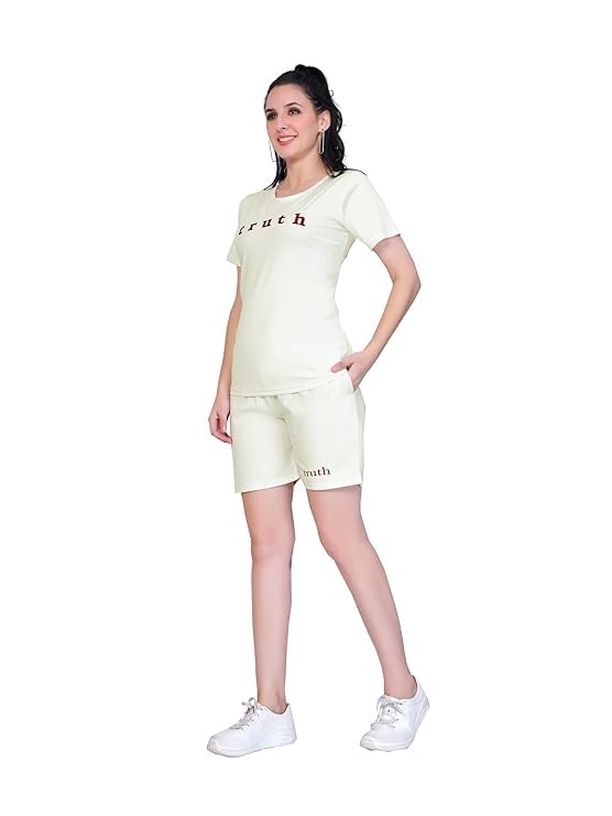Purple & Pink Cotton Blend Tshirt and Short Cord Set for Women