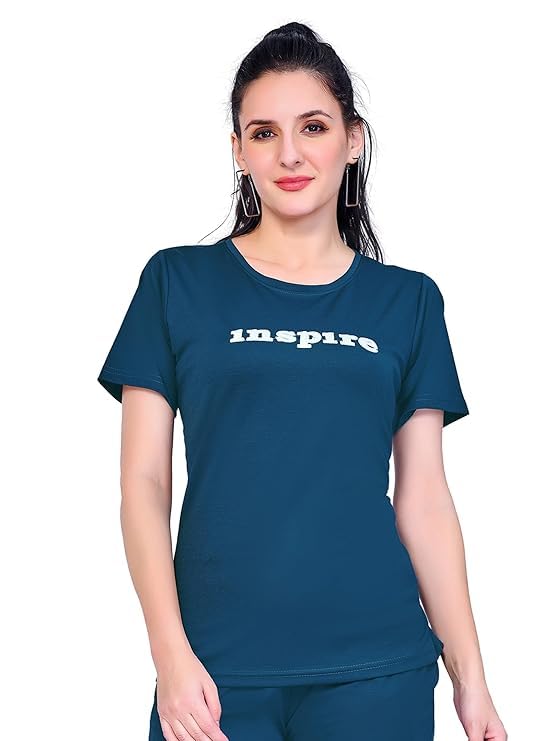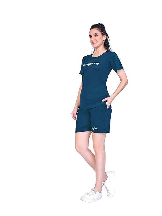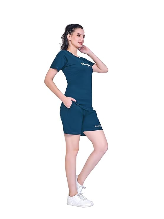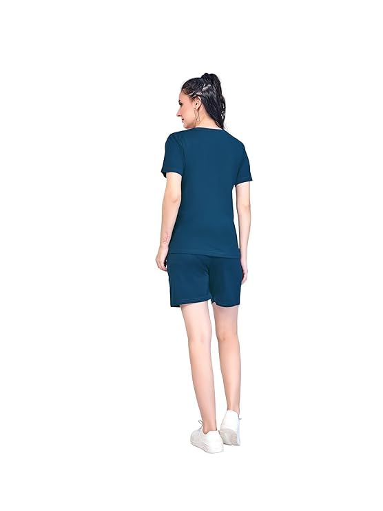 Purple & Pink Cotton Blend Tshirt and Short Cord Set for Women