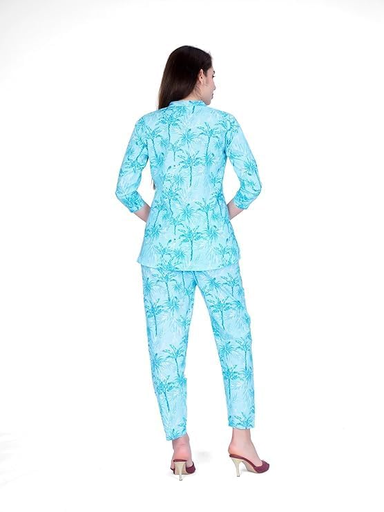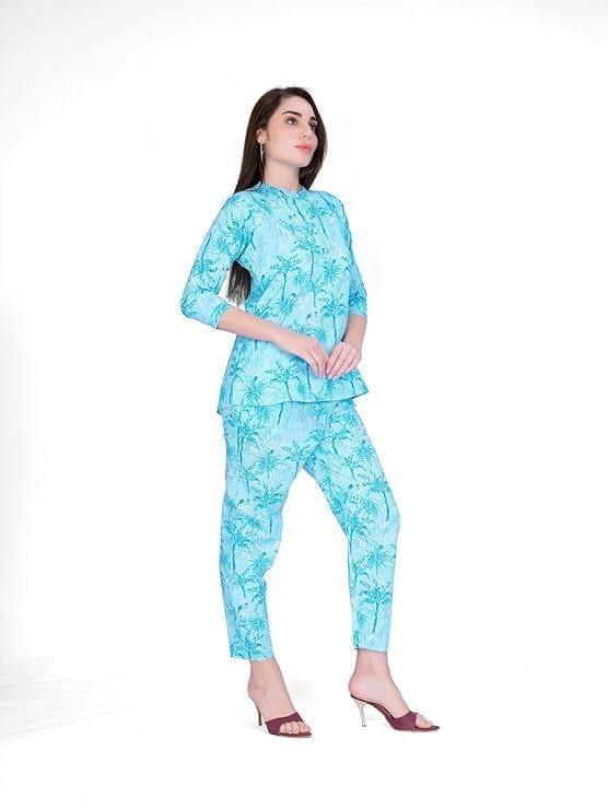 Purple & Pink Sky Blue Kurti-Pajama Cordset for Women