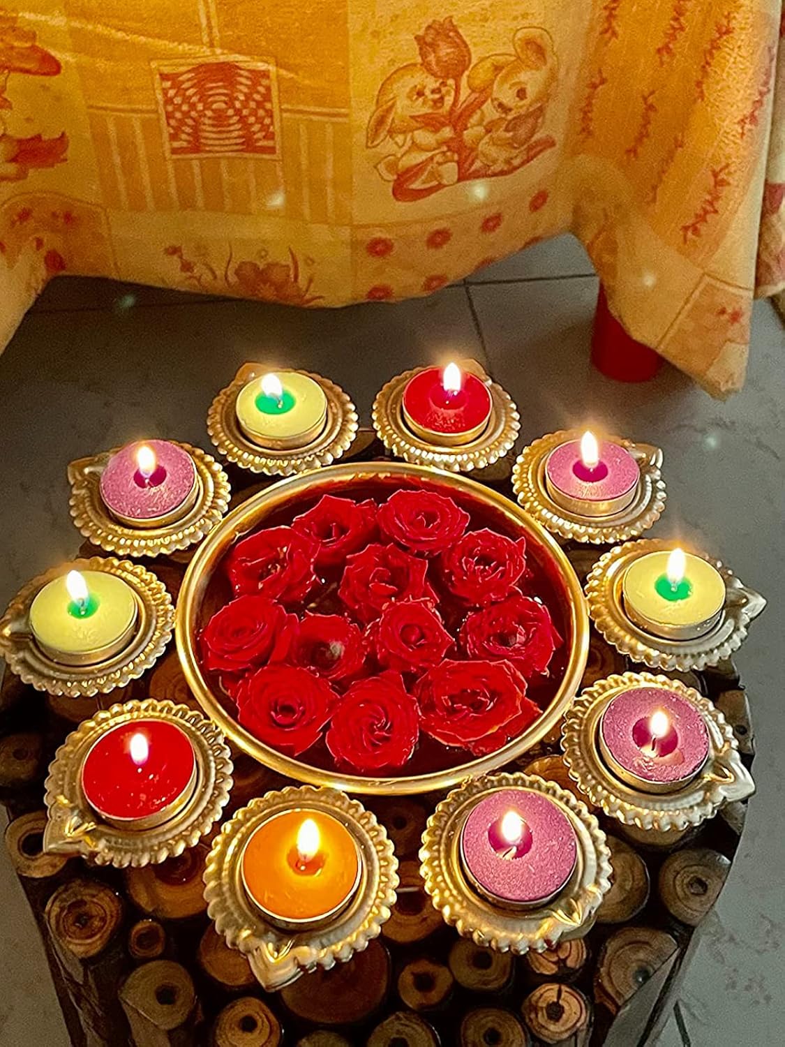 This urli is a perfect showpiece for those festive occasions when many people will visit you at your residence. Also, to enhance its beauty even more we have a set of tealights along with this urli .