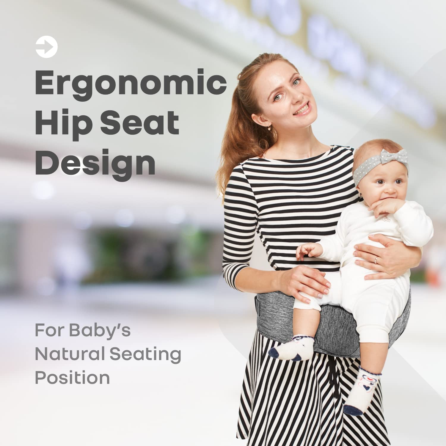 Ergonomic Hip Seat Belt allows mother to relieve lower back pressure: Hipseat allows for a natural sitting position for the baby where the bum and thighs are comfortably supported to the knees so that the hip joint does not experience abnormal undue pressure