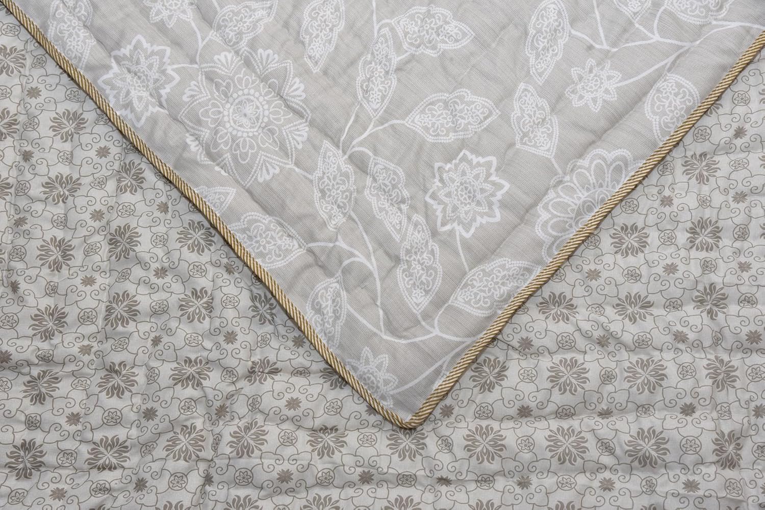 ✔ A fine hand-quilted Jaipuri razai or quilt. Made in cotton inside-out, this is a wonderfully light yet cozy handmade wonder. Gold printed on One sides.