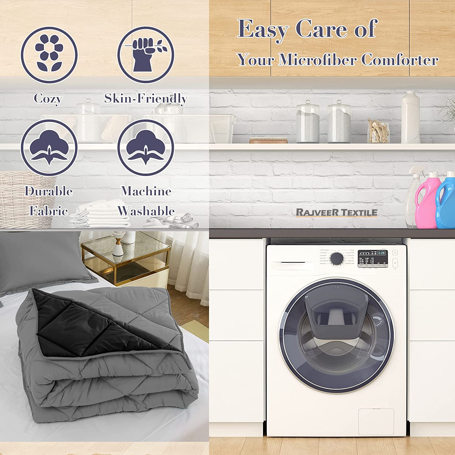 Highest Quality Control with precision Craftsmanship at our state-of-the-art socially compliant facility make our sheets the industry standard. RAJVEER TEXTILE 100% Microfiber/ Egyptian cotton bedding product set are Individually Quality Checked to ensure flawless perfection.