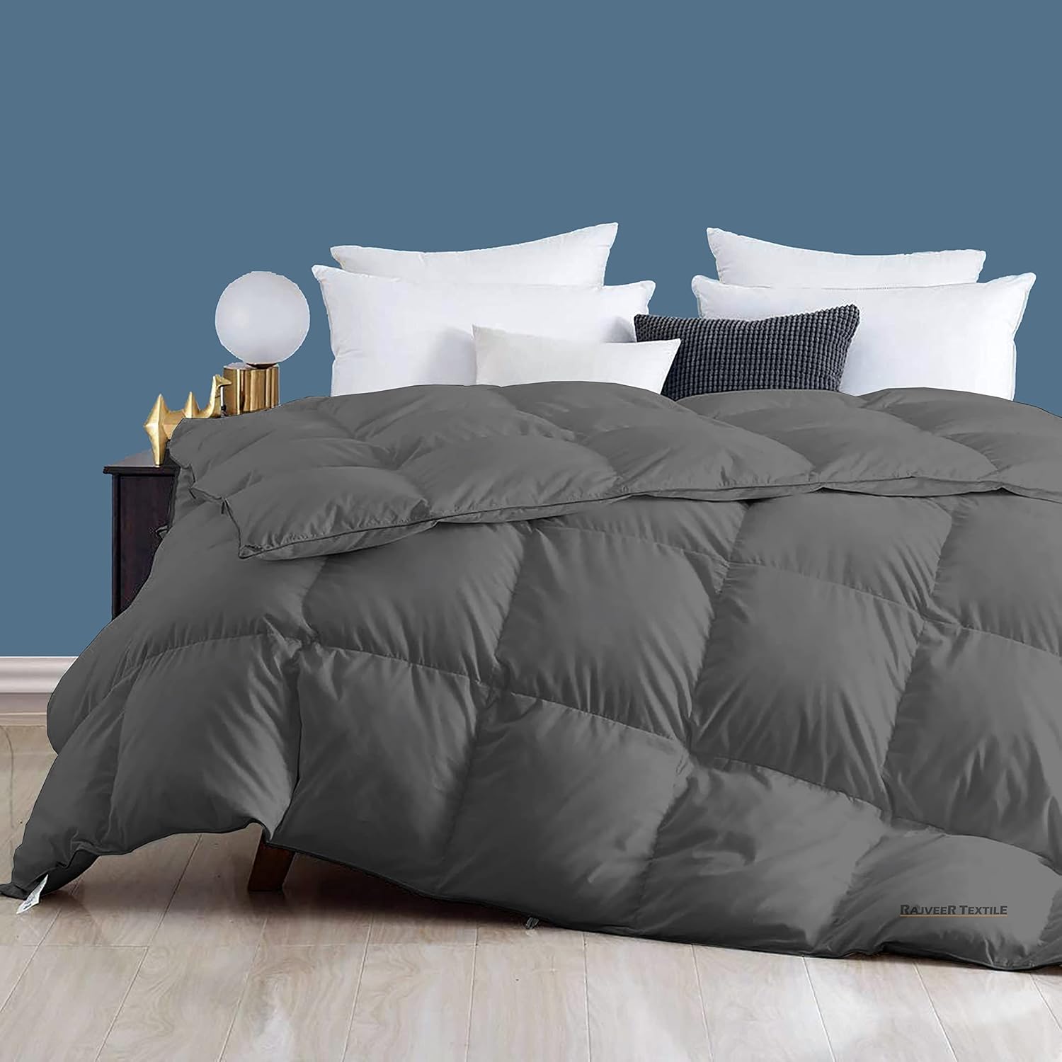 RAJVEER TEXTILE 300 GSM Comforter Double Bed Winter Blanket/Rajai/Quilt/Dohar (90″ x 100″) Box Stitch Winter Comforter for Double Bed Dark Grey Color