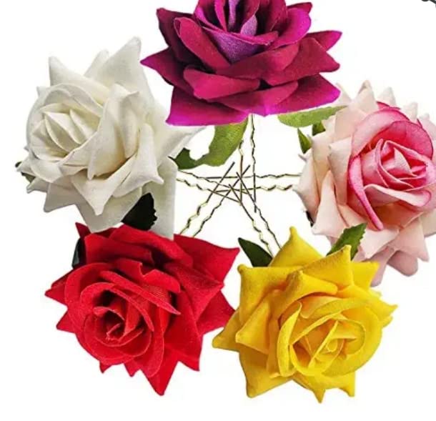 Rapid Artificial Flower Hair Pin Juda Clips For Women’s & Girls Hair Accessories Color- Multi (ROSE FLOWER 5PC), Multicolour
