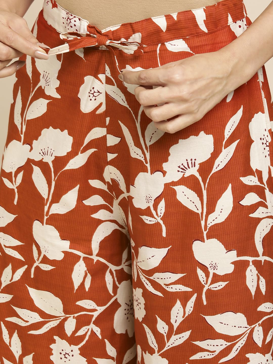 Stay comfortable with RATAN palazzos and discover a whole new personal style. These bottoms are designed in a variety of solid colours and prints to match all your wardrobe essentials. Crafted with the utmost care to suit your desired fit and comfort, this palazzo is made in natural, soft fabric that falls well and is comfortable to the skin. Style it with a hip-length top or Long kurti and a pair of sandals. Perfect for casual and work wear.