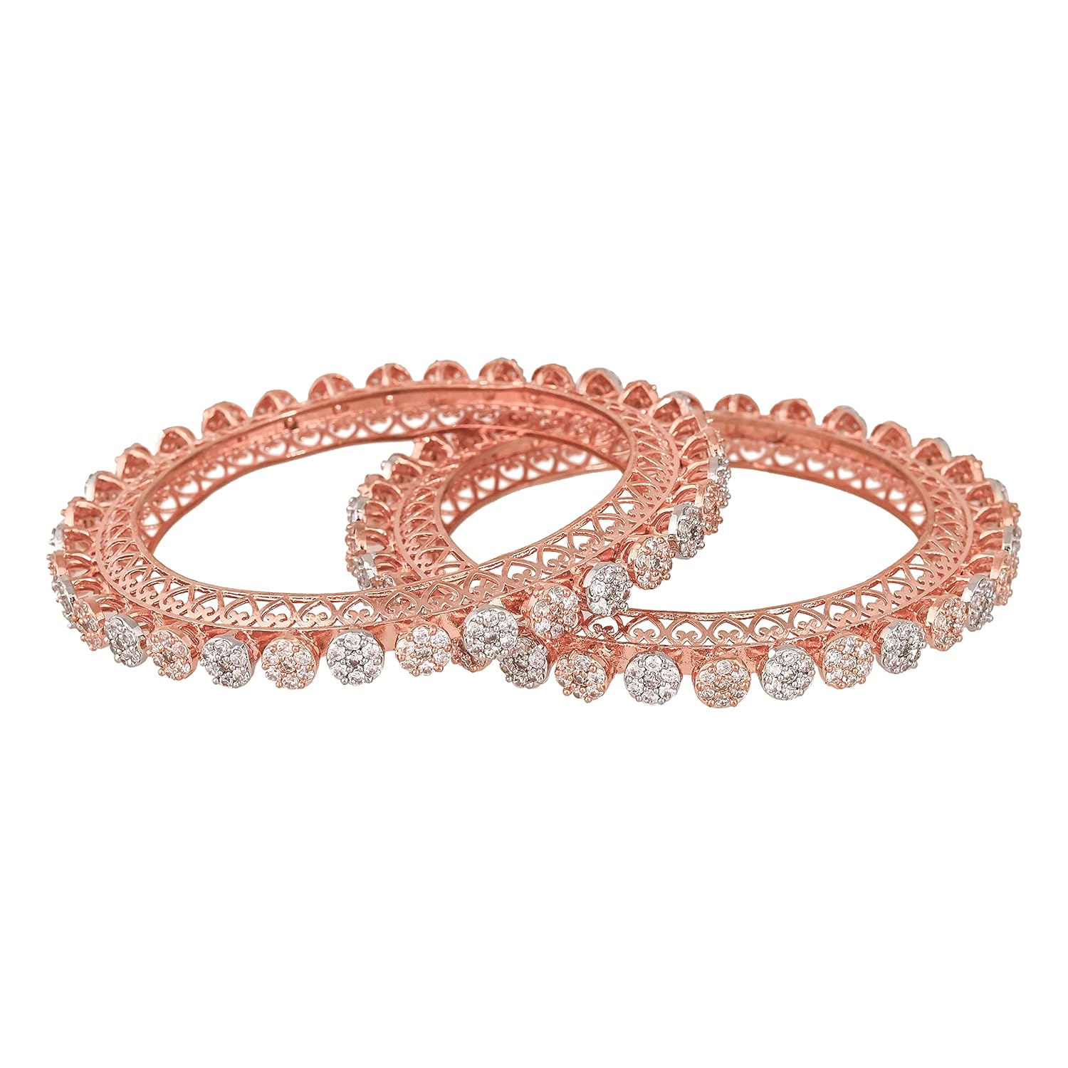 Ratnavali Jewels Rose Gold Plated Traditional White American Diamond Stone Pacheli Kada Bangles Set for Women/Girls