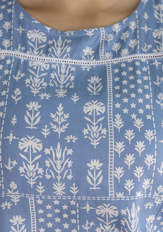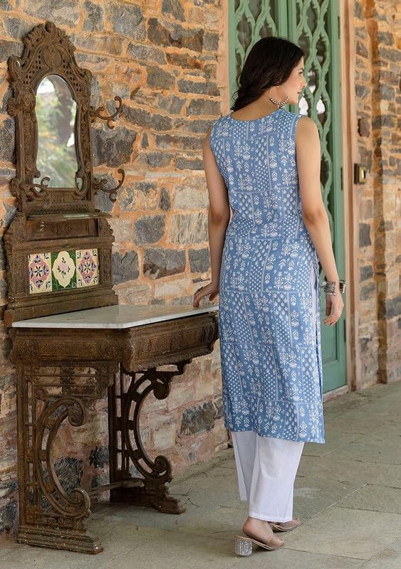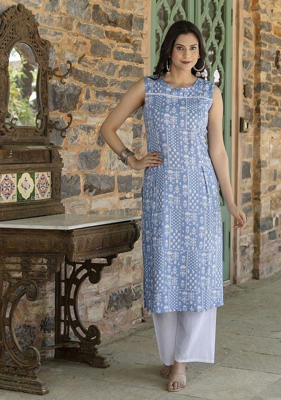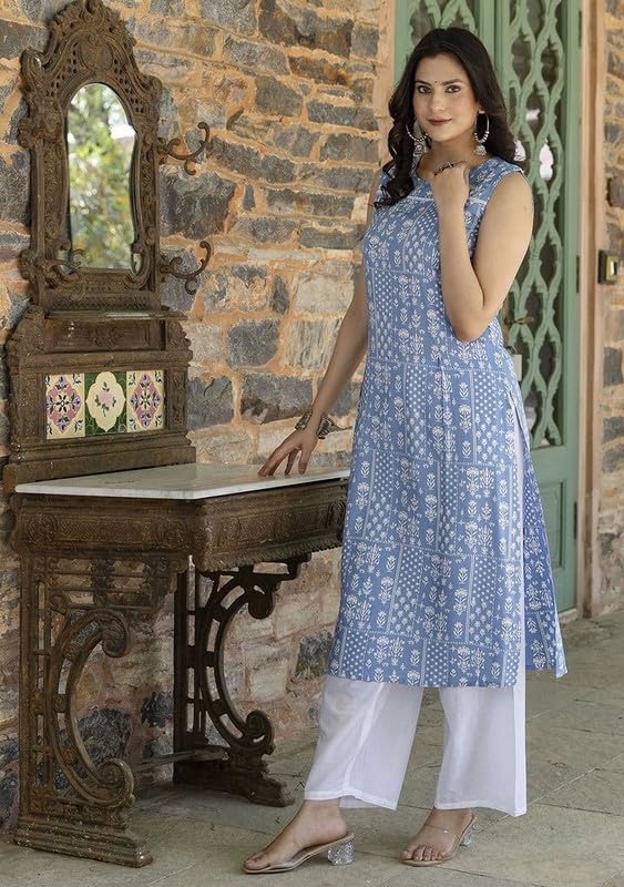 Rayon Kurti for Women | Sleeveless Single Long Kurti for Women | Blue | 1102