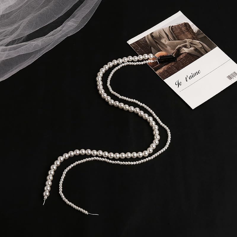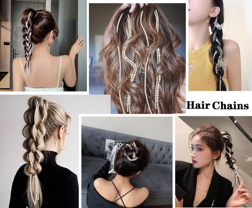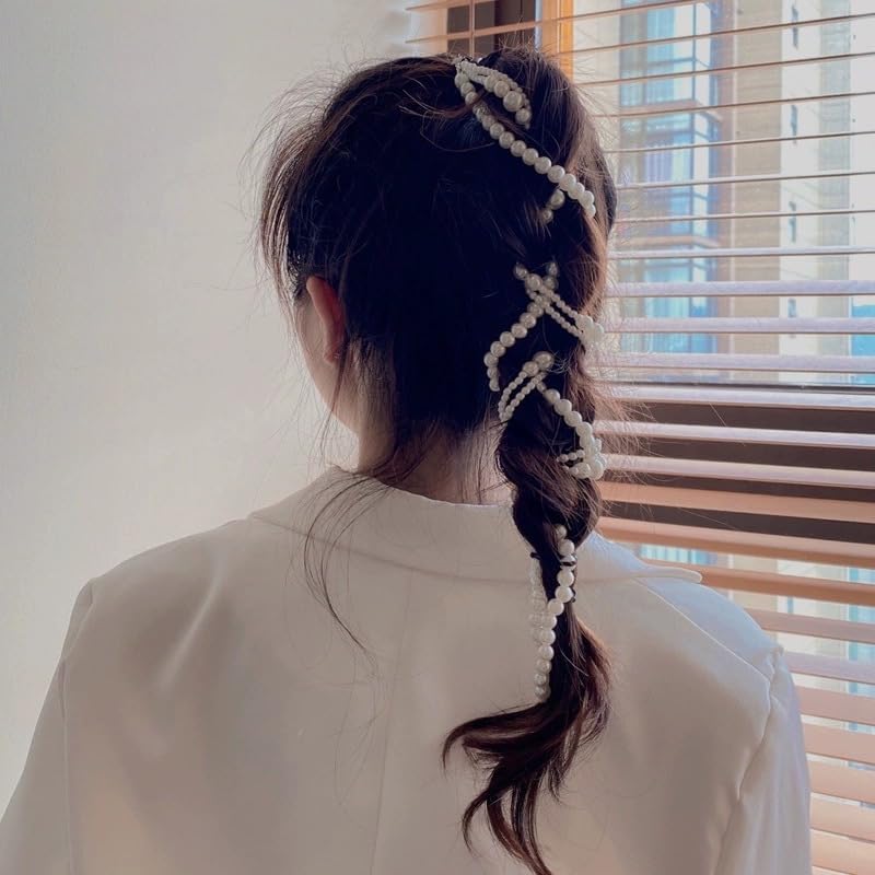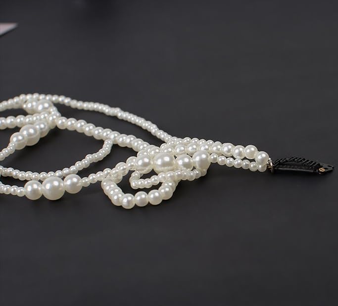 RECTYO GALLERY 4 Pcs Premium Faux Pearls Hair Accessories Hand-made Imitation Pearl Hair Chains Hair Clip Wedding Artificial String of Pearls for Braids for Women,