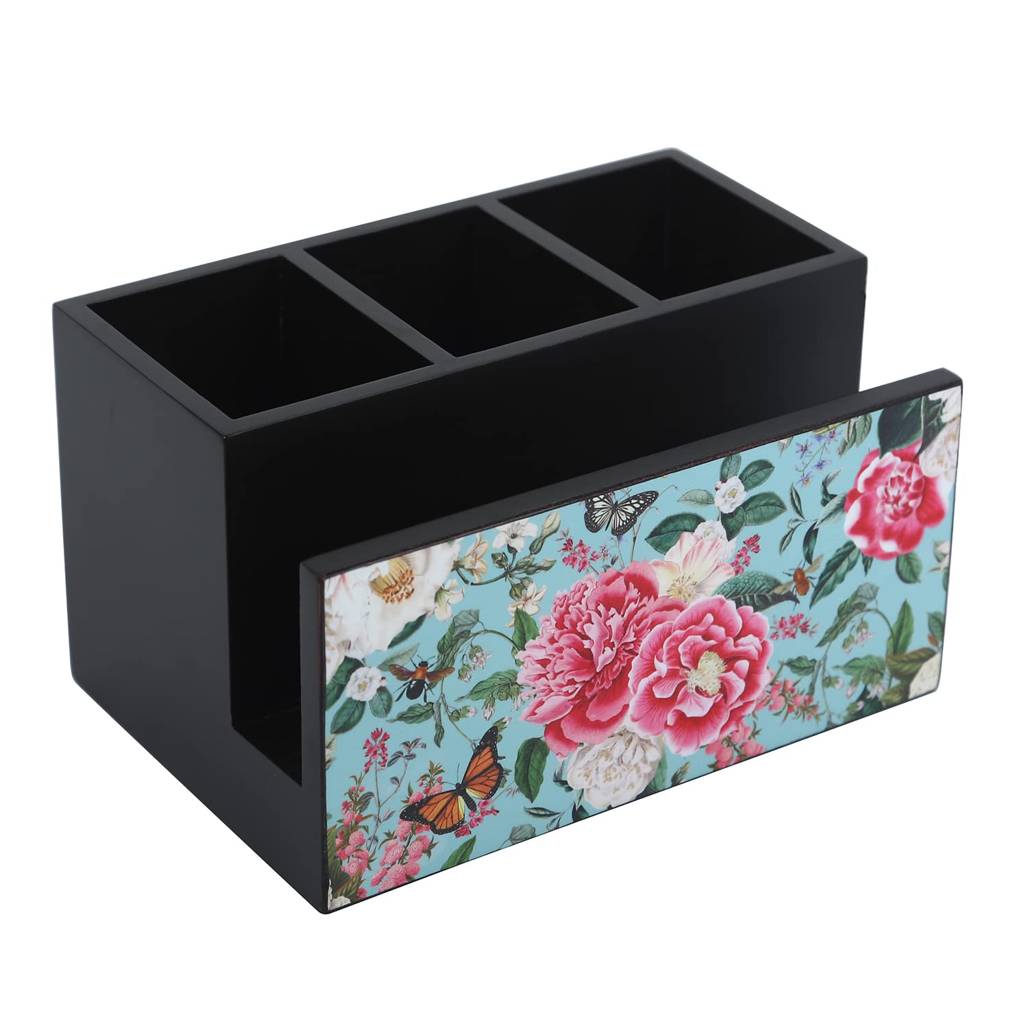 This beautiful wooden tissue cutlery holder makes organizing essentials a breeze. Crafted from Engineered wood with a floral motif carved along the front, it provides the perfect place to store tissues, cutlery, napkins and more in style. The open design allows you to easily see and access items while protecting surfaces from scratches or stains. The spacious compartments can also store makeup brushes, hair clips, pens, eyeliners and more, keeping your countertops neat and clutter-free. Measuring approximately 7inches long by 5 inches wide, it takes up little space but adds visual interest wherever placed. Whether on the kitchen counter, dining table or desk, this versatile accessory keeps necessities organized while enhancing the look of any room. The floral Printed design also makes it a lovely gift for hostesses, housewarmings or holidays. Its eco-friendly materials and multi-functional design make it a quality purchase that you’ll enjoy for years. Simply wipe clean when needed. Sized for practical storage, this cutlery holder is ideal for kitchens, bathrooms, work desks and beyond.