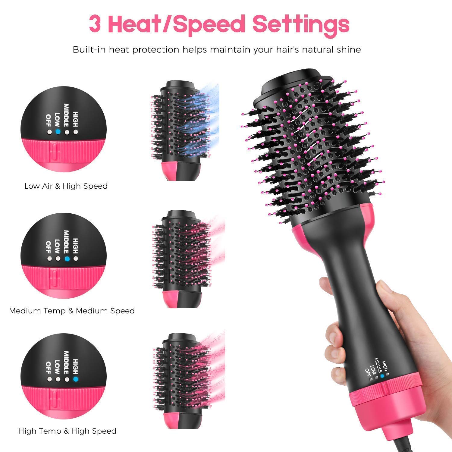 Multiple Heat Settings And Multi-Functional – Hot Air Brush Comes In 3 Adjustable Heat-Levels For Different Hair Types, High Heat For Thick Hair, Low Heat For Fine Hair, Flexible Setting To Lock In Your Beautiful Hairstyle. This Volumizer Can Be Placed Closer To The Scalp For Lift. Also Use It As A Dryer, Styler, Volumizer, Make Your Hair Curly, Wavy Or Straighten. Perfect For Dry, Wet Hair And All Hair Types. Ideal For Home Use, Travelling And Even The Office.