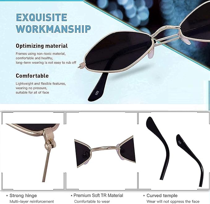 Variety of Finishes: Cateye metal sunglasses are available in a wide range of finishes, including classic black, silver, gold, and various metallic shades, allowing you to choose a style that matches your personal taste.