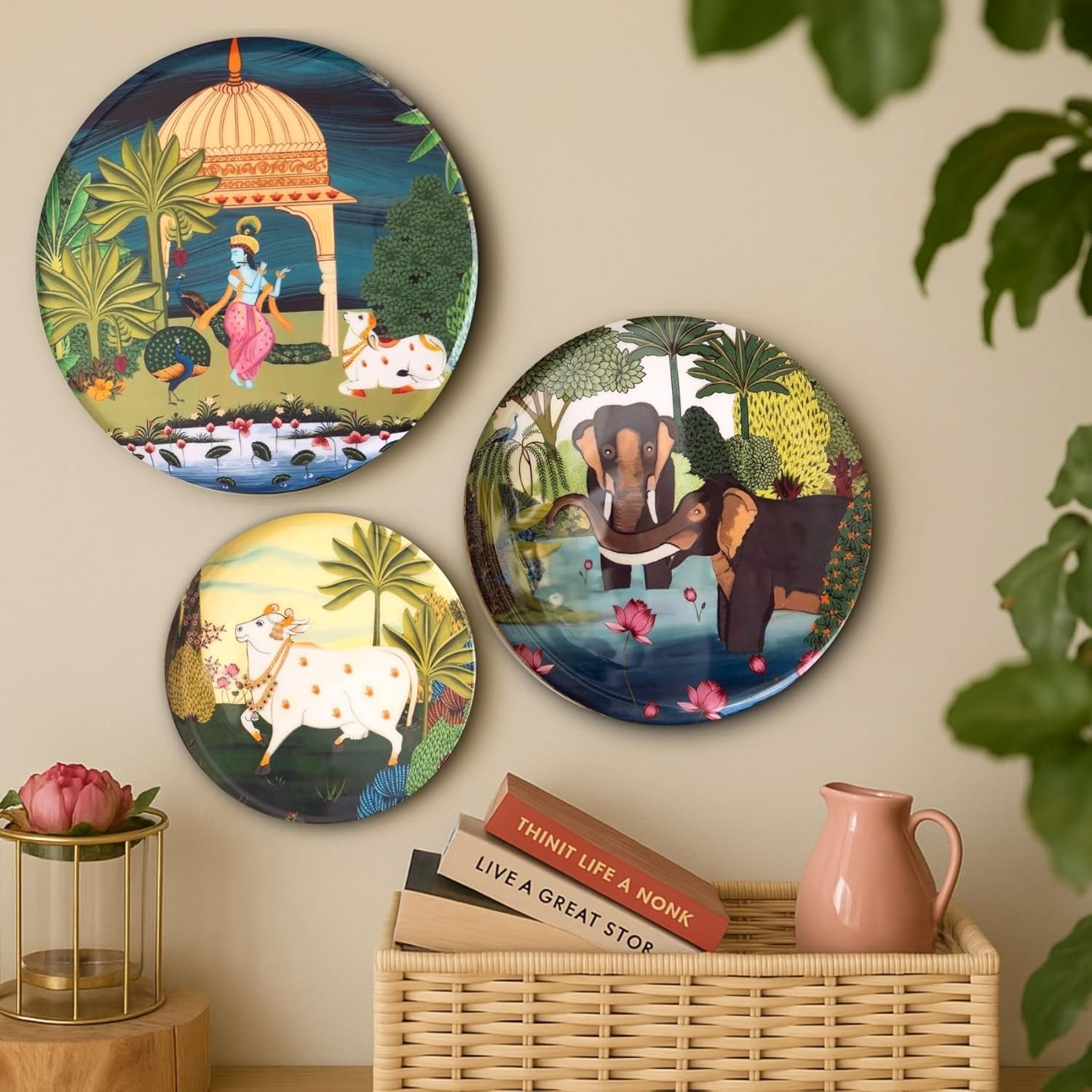 Premium Metal Craftsmanship: Ritualistic Dwarka Pichwai Wall Plates are an ideal addition as wall decor items for living room and bedroom. Crafted with high quality metal for longer life