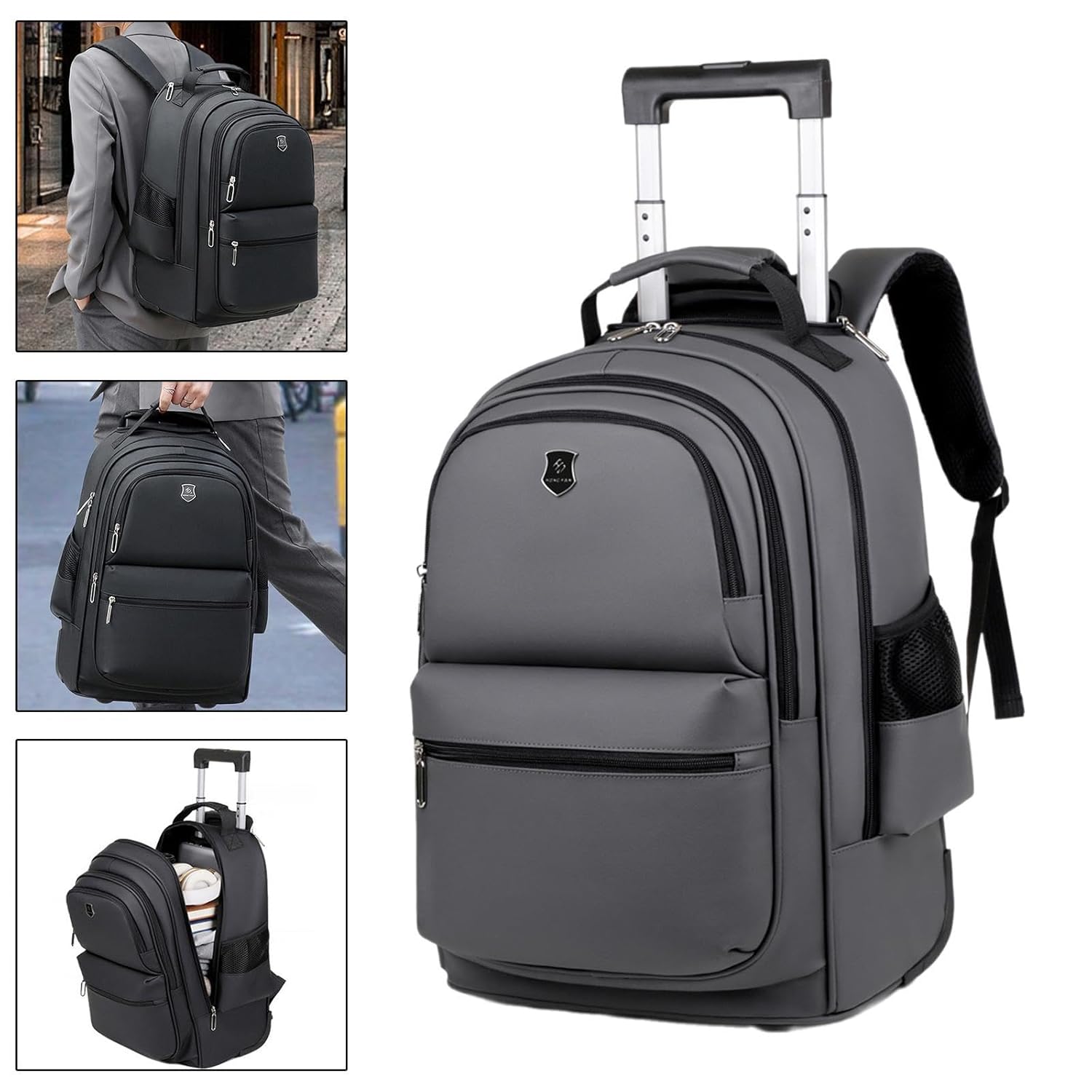 Rolling Duffel Bag Water Resistant Backpack for Men and Women Storage Travel Gray Luggage