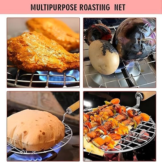 Rostar Kitchen Griddle with Wooden Handle, Square Chikan BBQ Grill Rack for Roti Papad Roasting Pack of 1